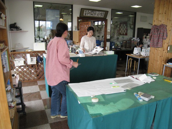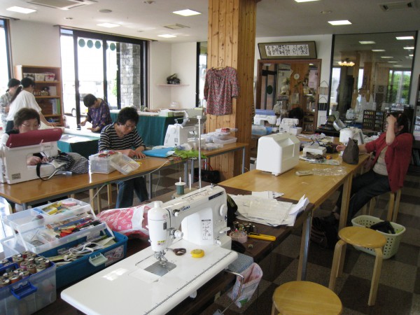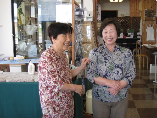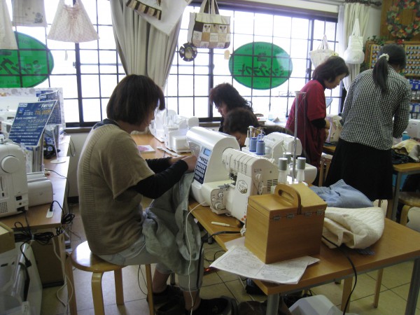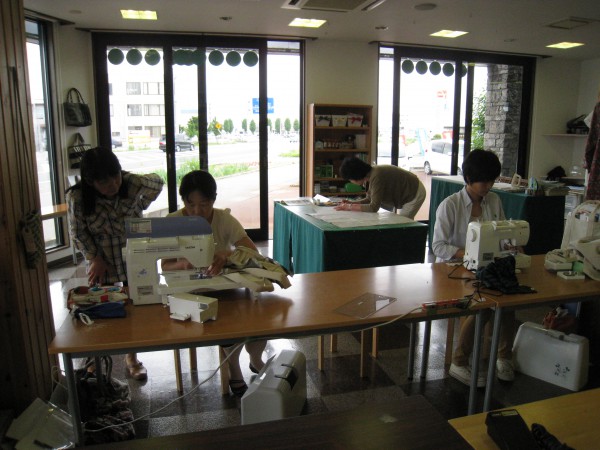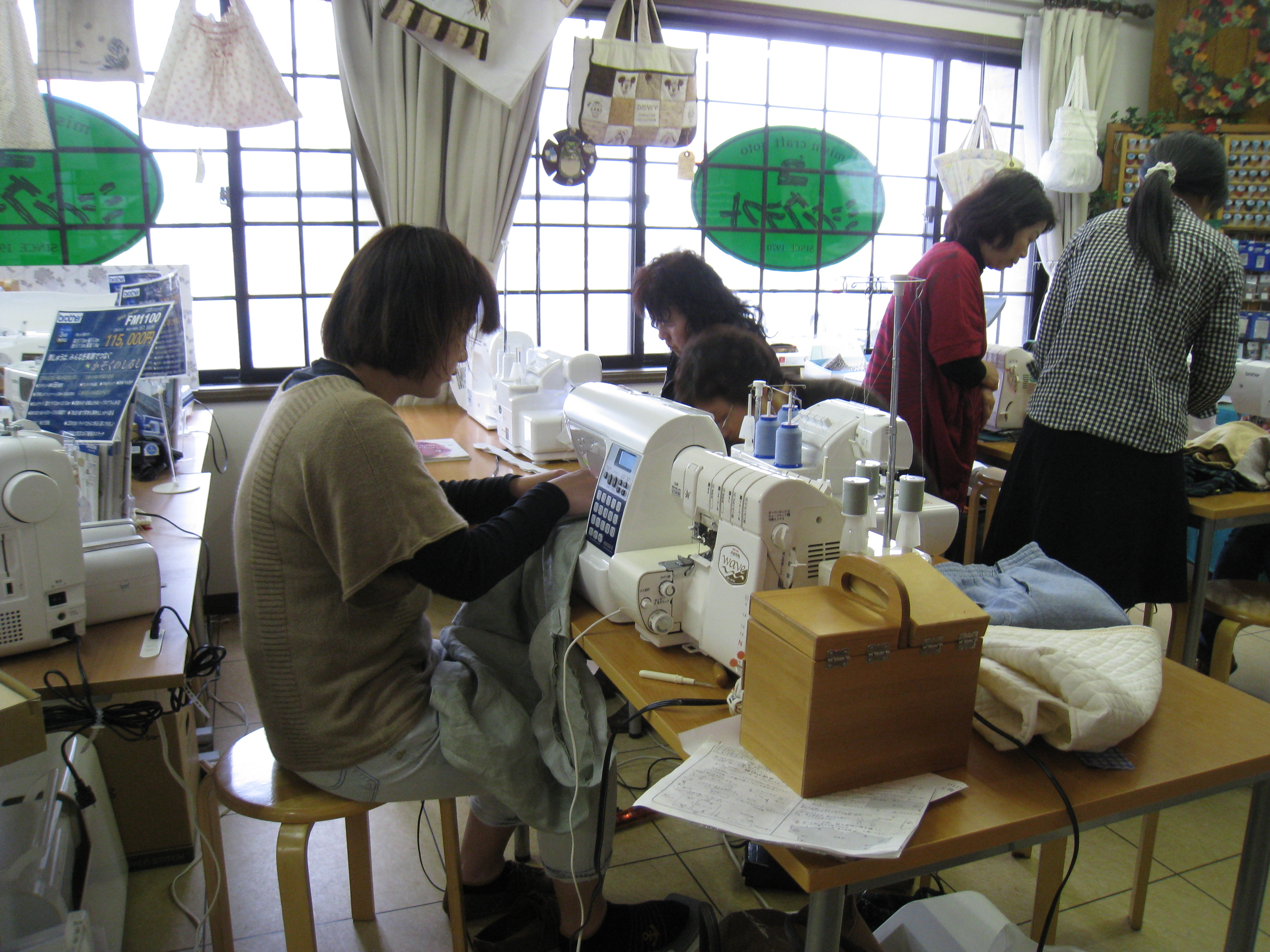 台の周りが賑やかです。ロックミシンを買っていただいた鈴木さんと木曜コースの美智子