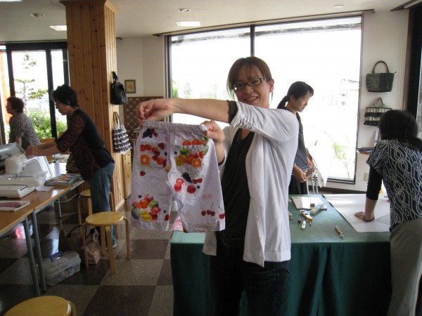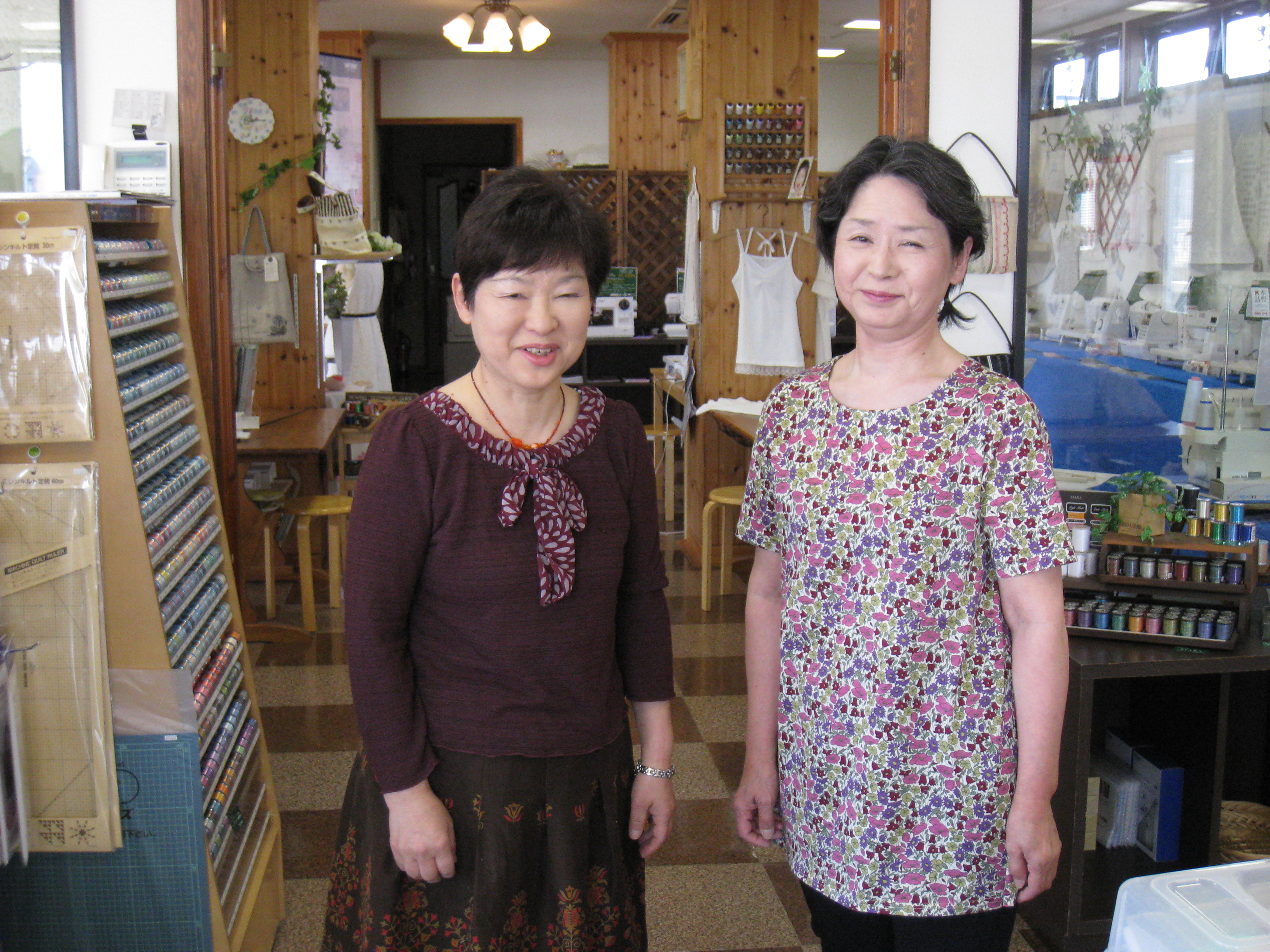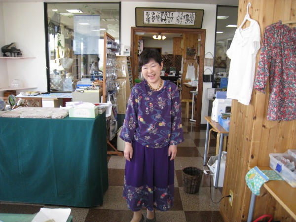 午前参加の五十嵐さんと木村さんはそれぞれご自分で作った服を着て来店です。紫色で