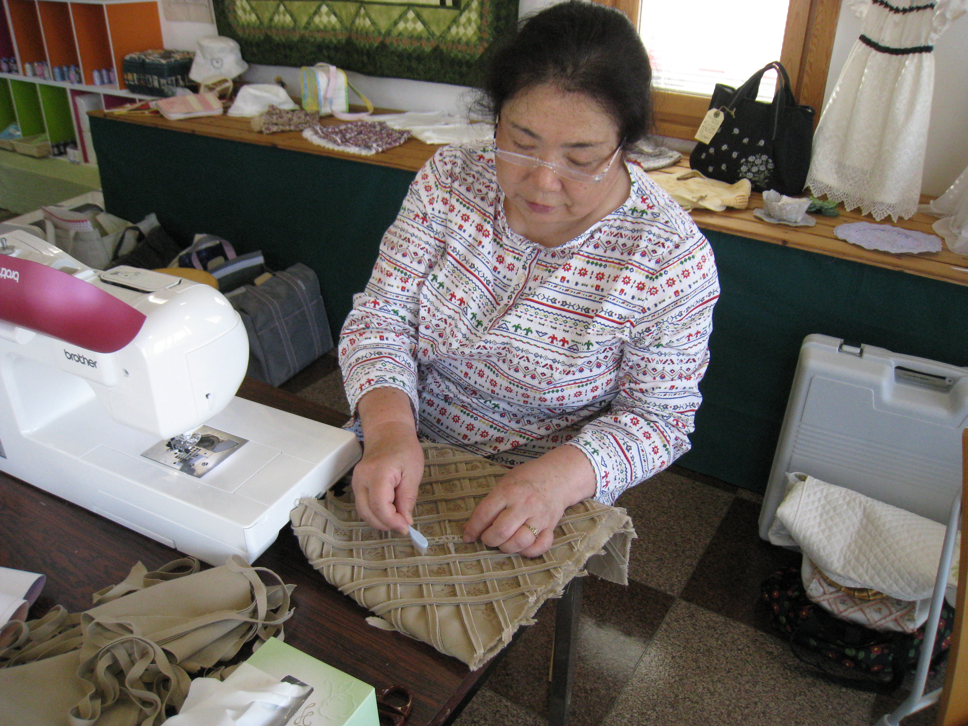 今日は一日参加の後藤さん。スラッシュキルトのバッグを作成中です。午前中に刺しゅう