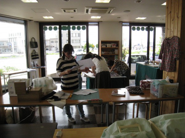 違いましたか?赤松さんはペーパーファンデーションで作るポーチを作成中です。