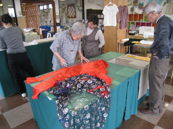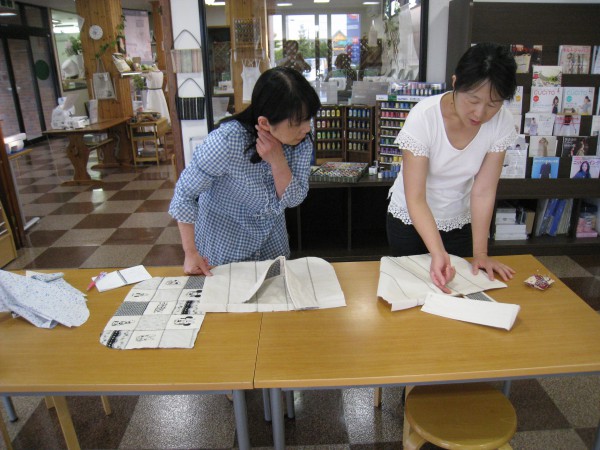 今日はそれぞれご自分で持ってこられた生地を裁断して、それを5mmの縫い代で縫い