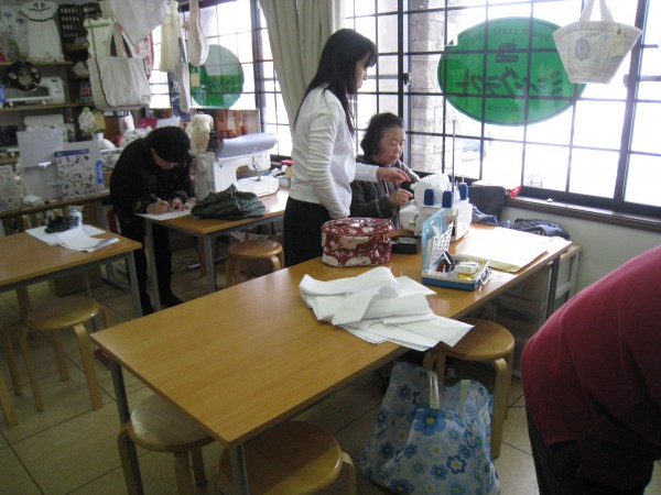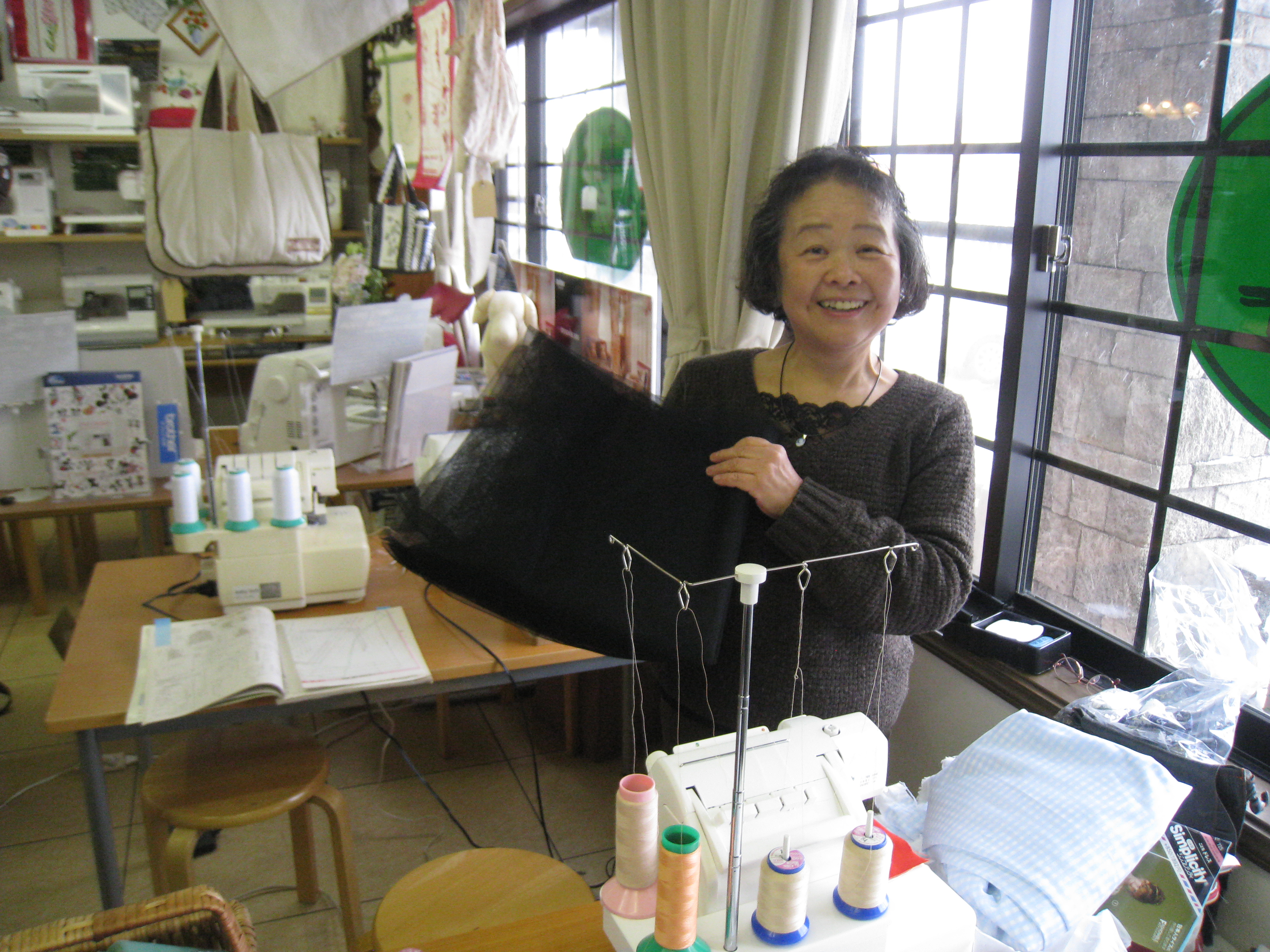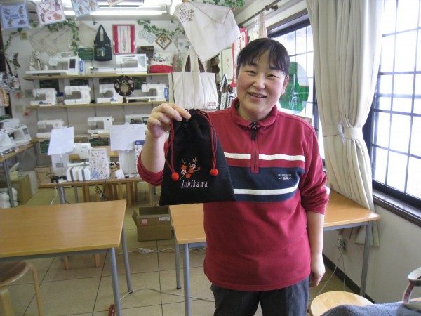 その菅原さん。今日の朝作った巾着を見せてくれました。喪服からのリフォームです。
