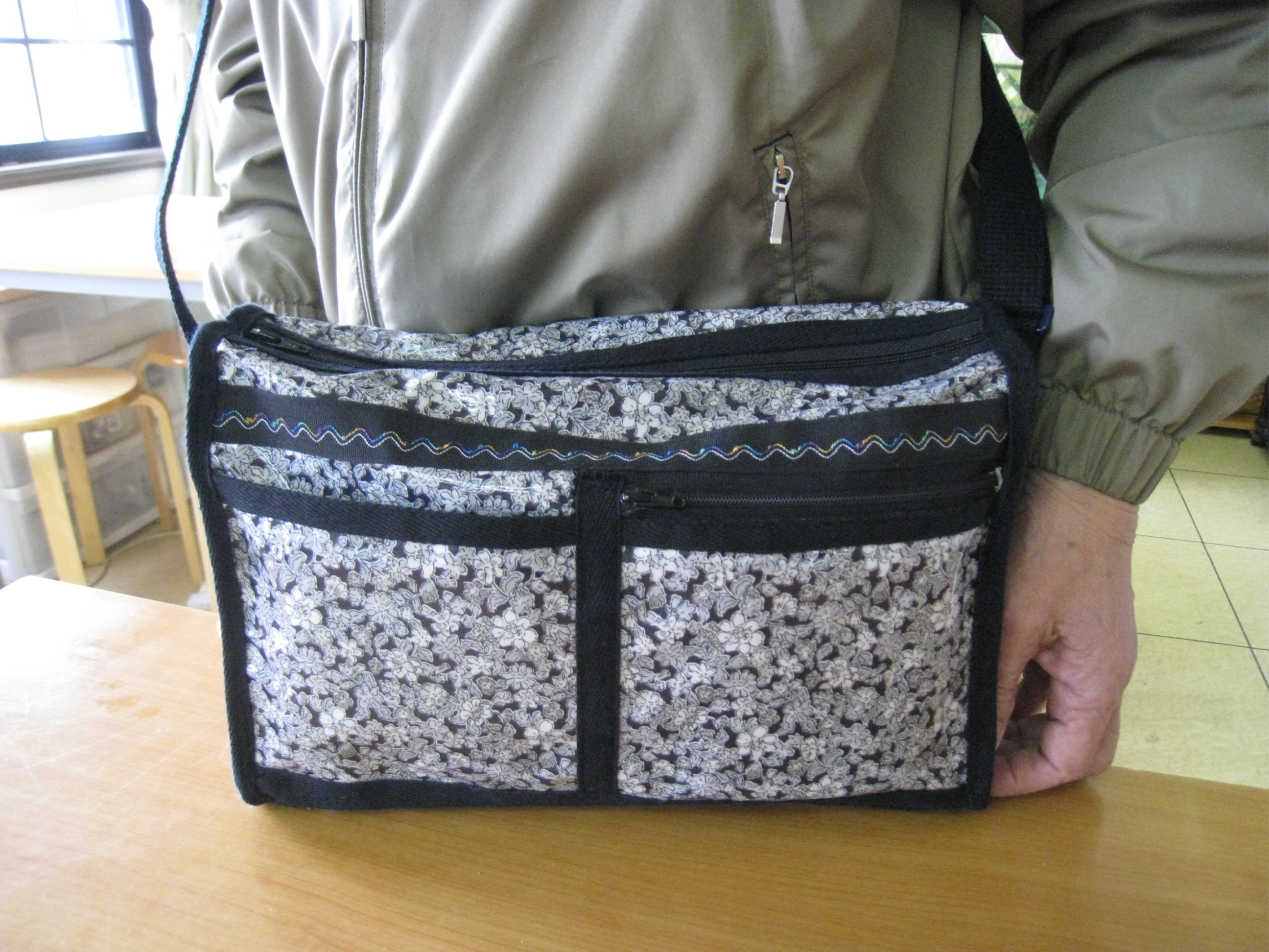 すみませんでした。その早坂さんは、出来上がったショルダーバッグをお披露目して