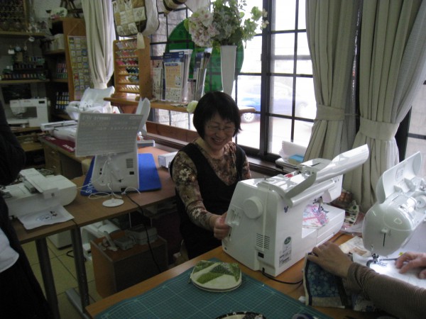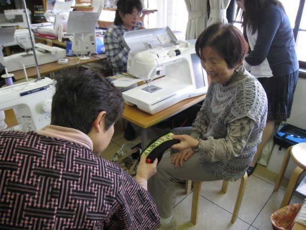 ステッチを選ぶ表情から、縫っている時もにこにこです。きょうの講習会は山木さんの