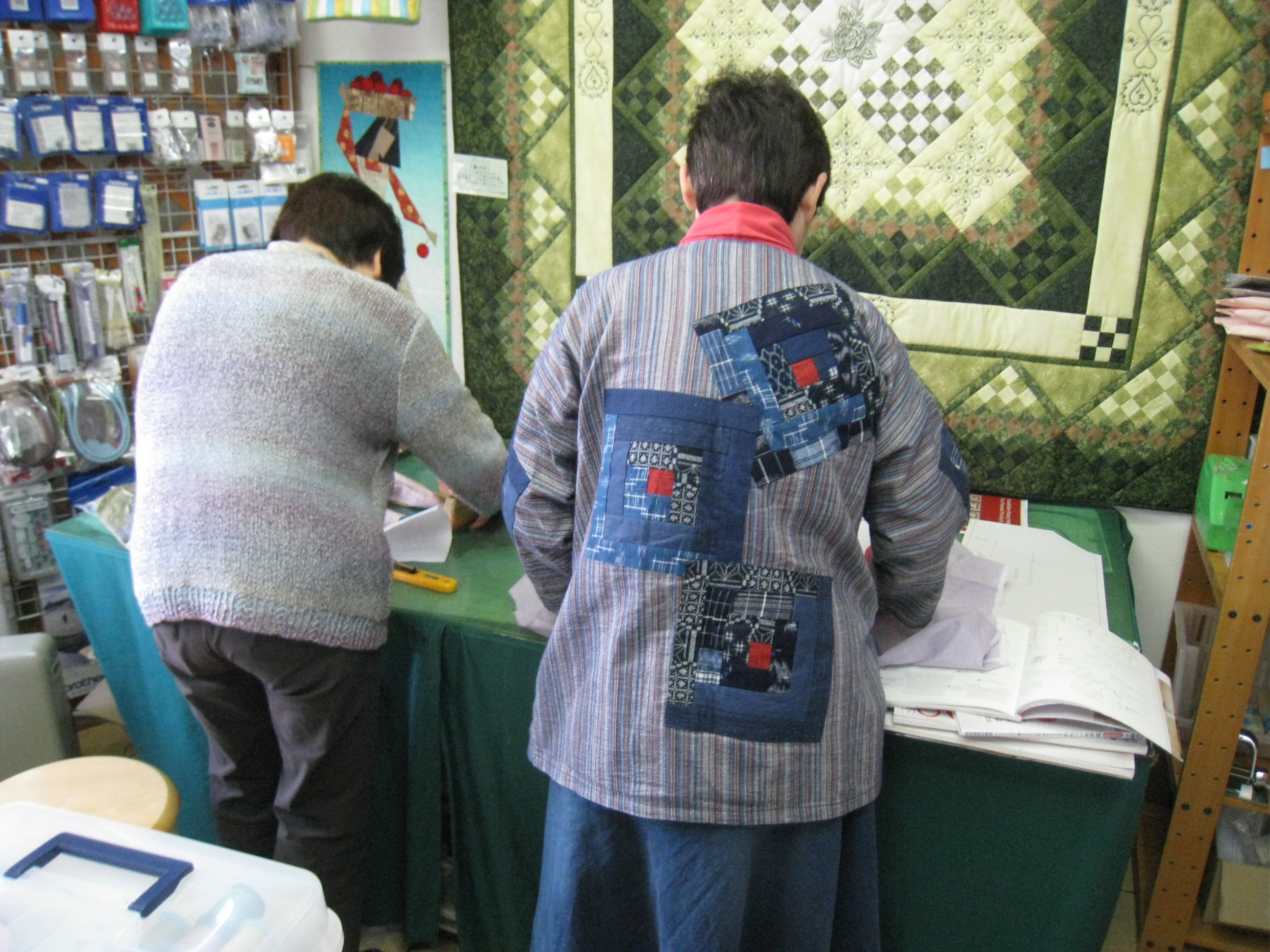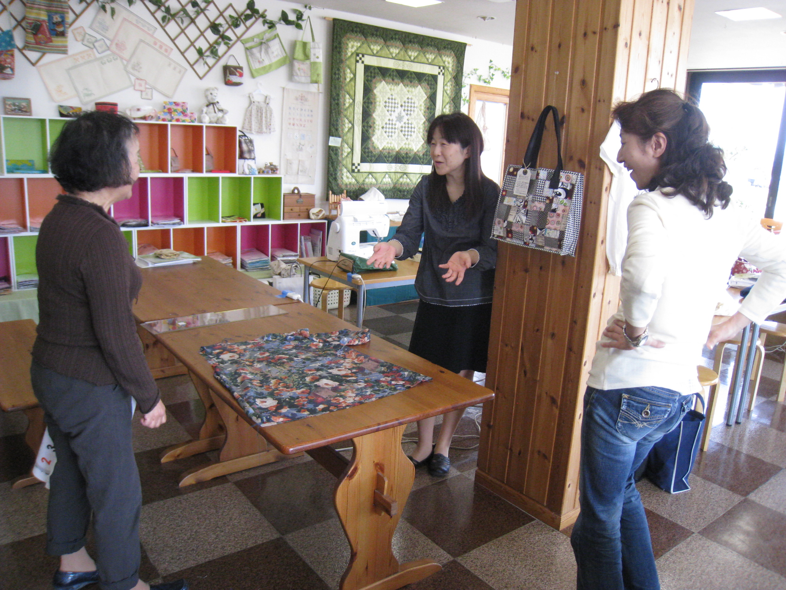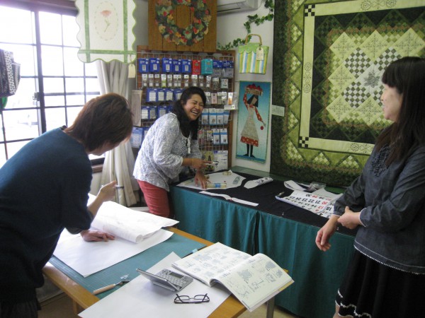 その早坂さんと、いつもは火曜日に参加の松田さんと、ちょっと縫い方の相談に来た伊藤