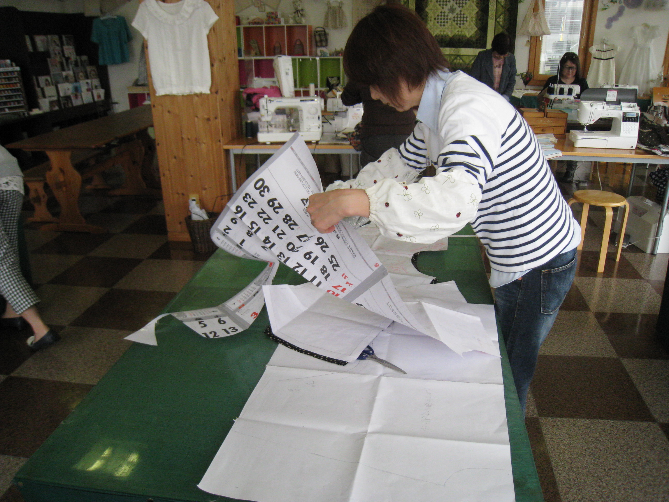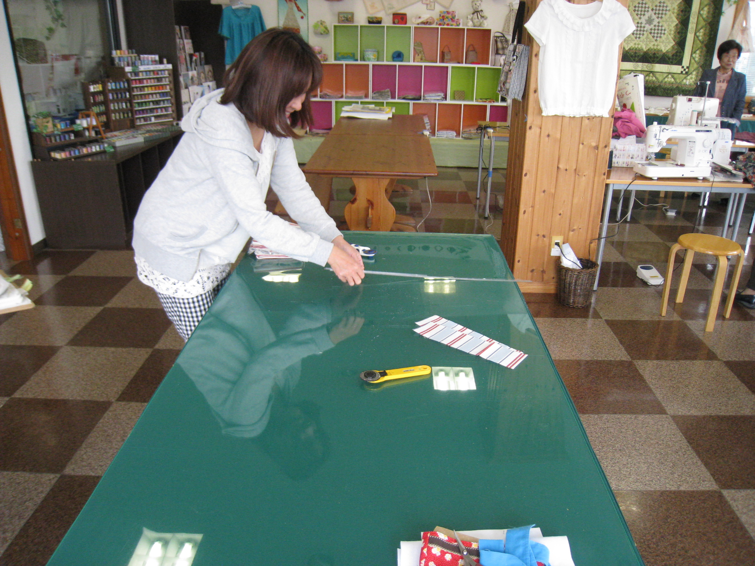 スペースを前のミシン部屋に移動したこと、もう一つは裁断台を増やしたことです。