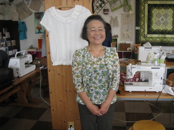 さん。去年の秋に作った『胸元レースのカットソー』を着てこられました。偶然ですが、