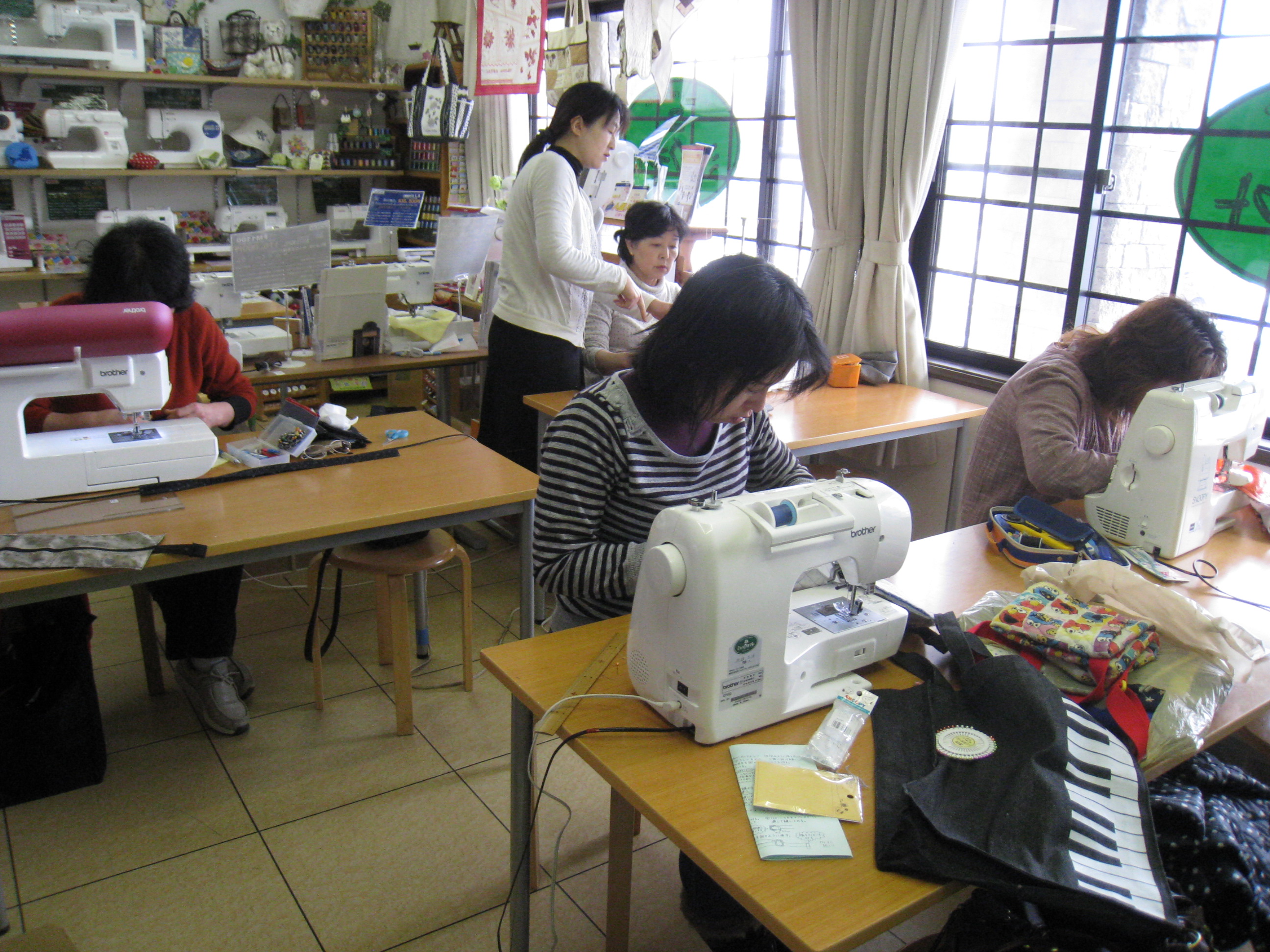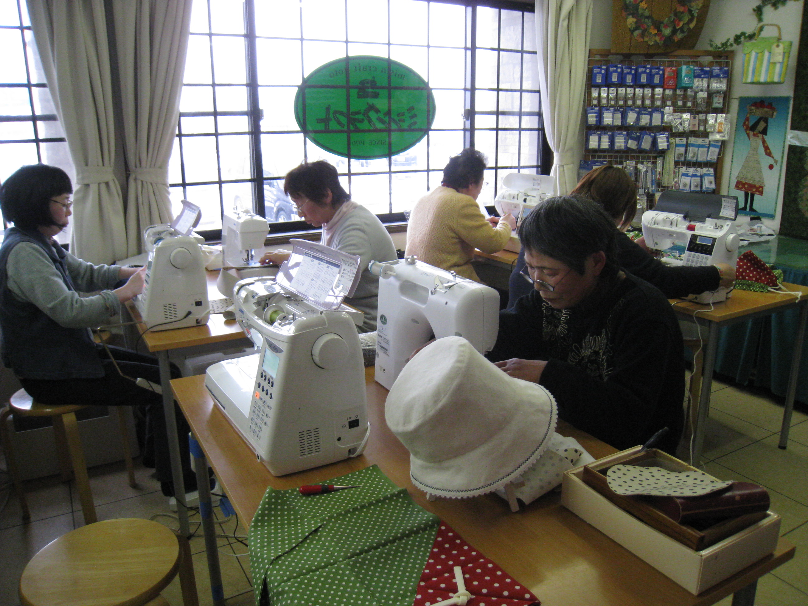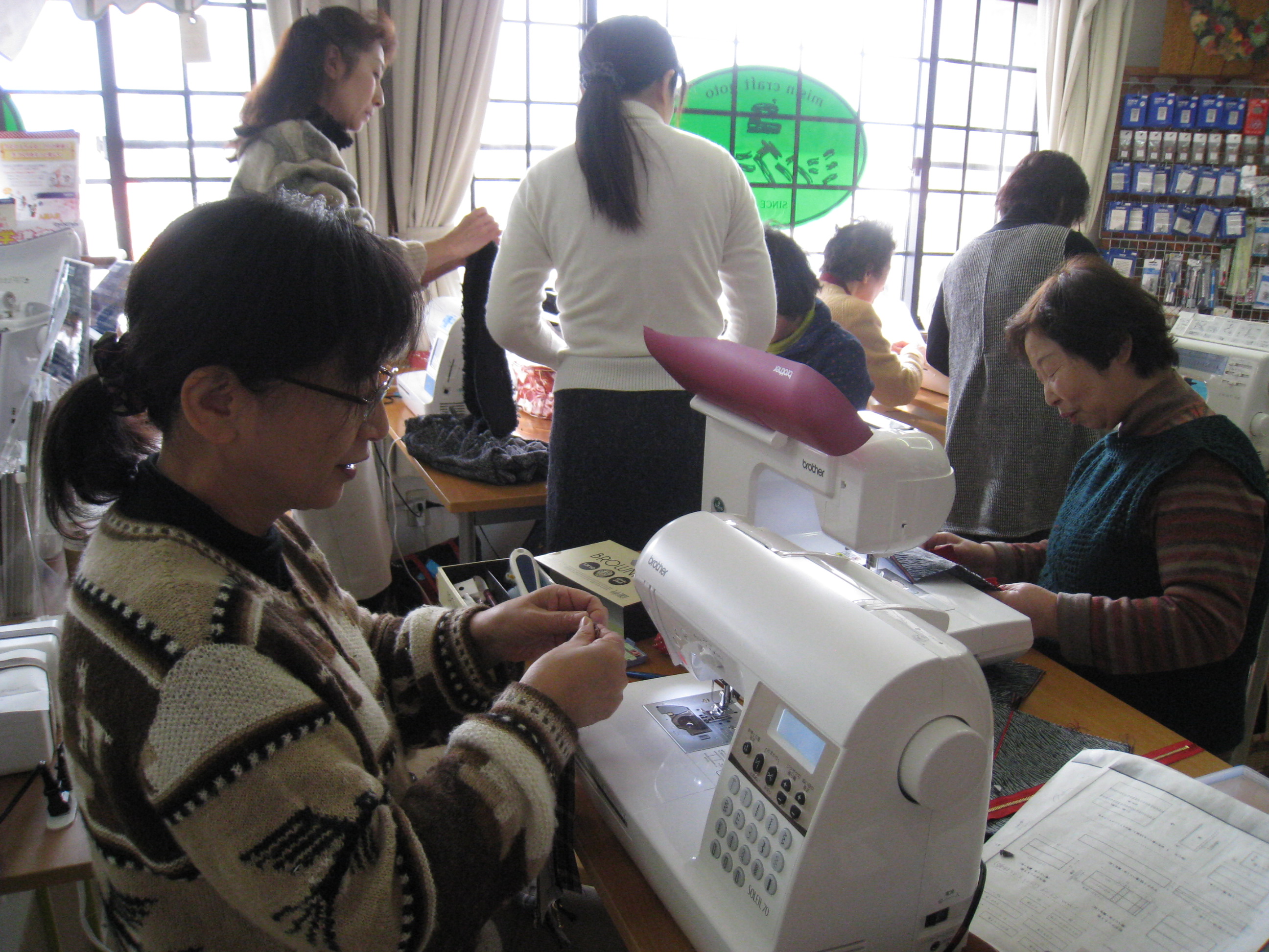 午後からの初回講習ではそれぞれ『エコバッグ』と『帽子』を作りました。新しいミシン