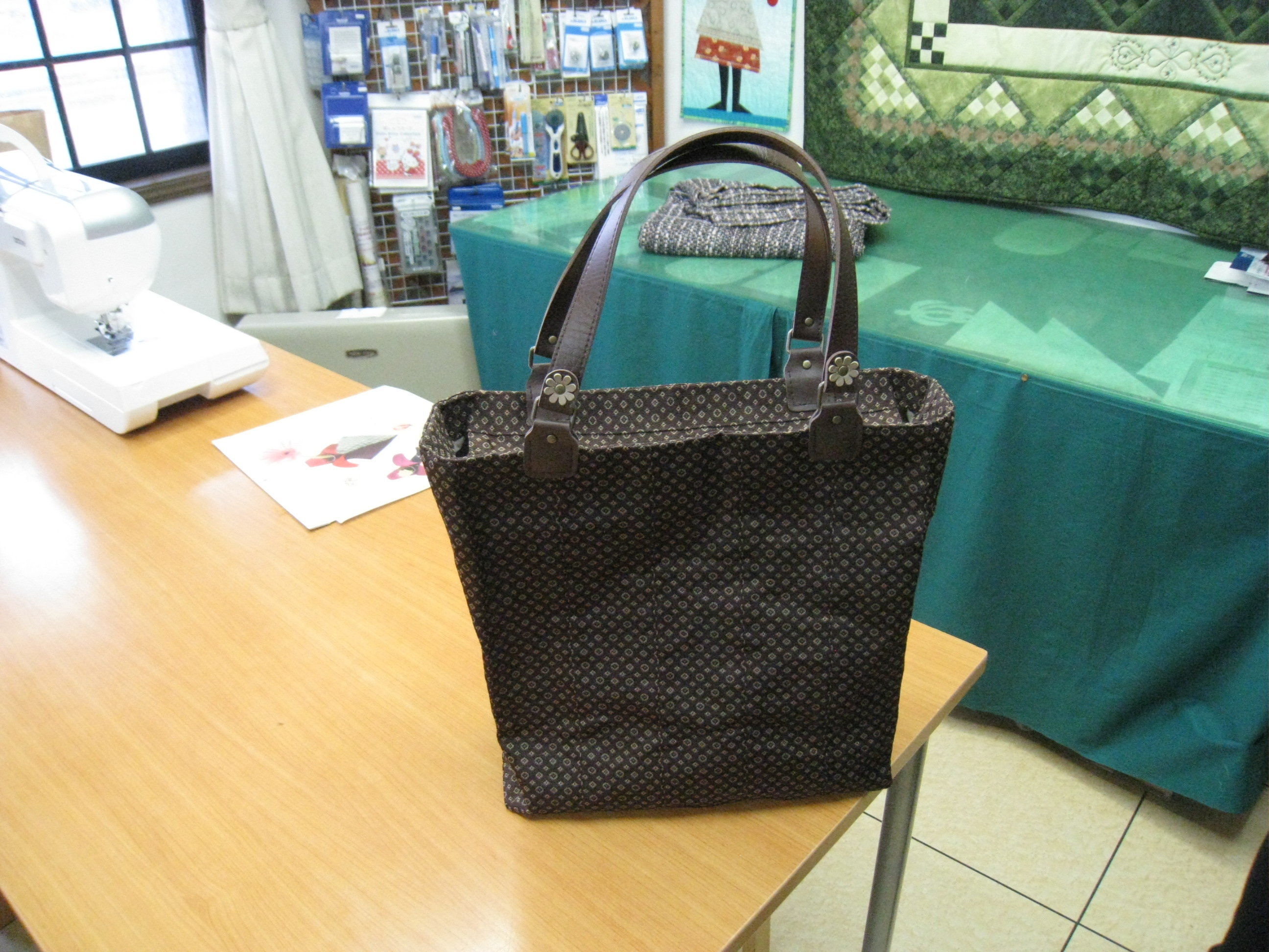 このバッグ、裏にシール芯を張ったため腰がしっかりした出来上がりになりました。