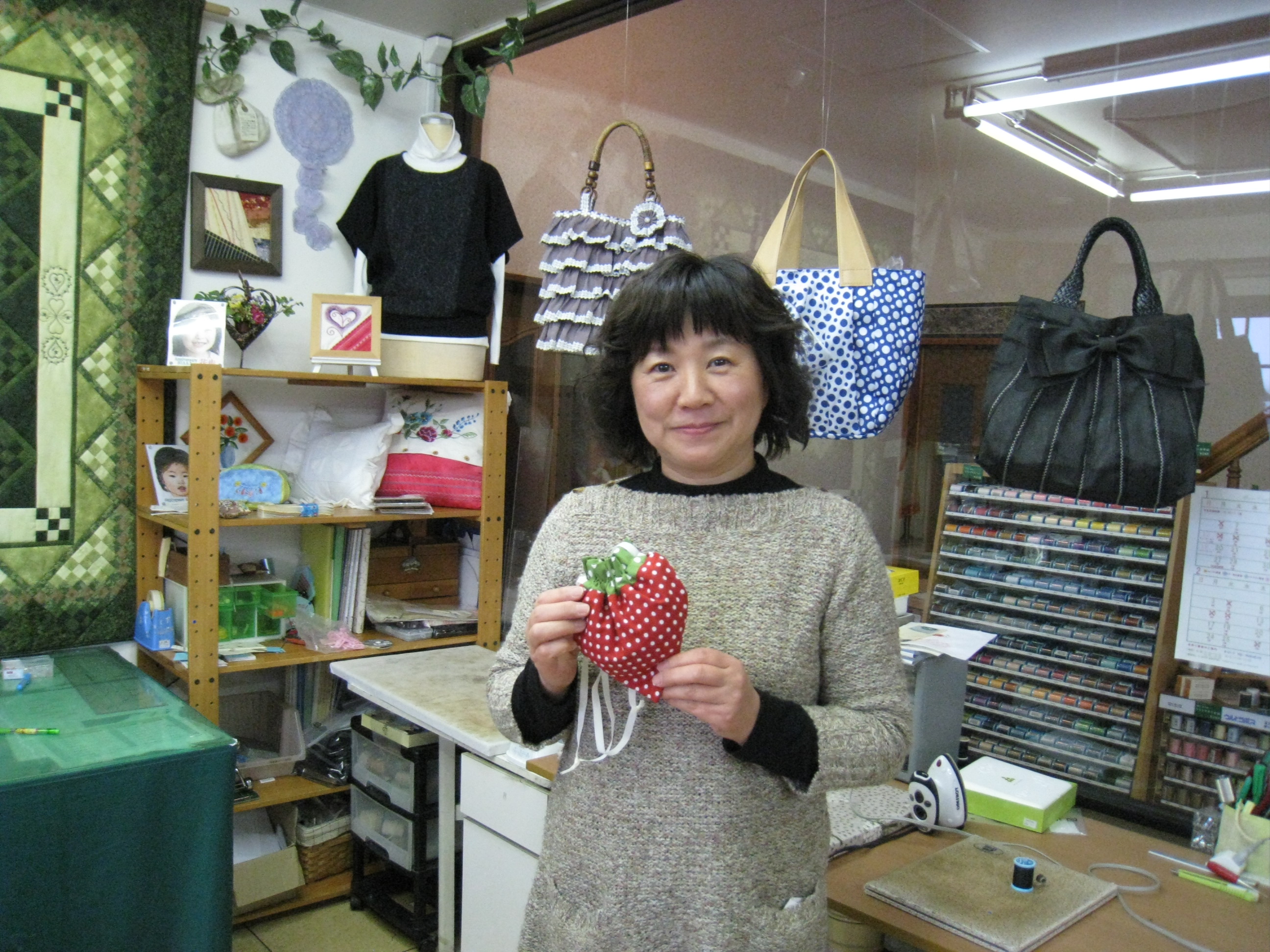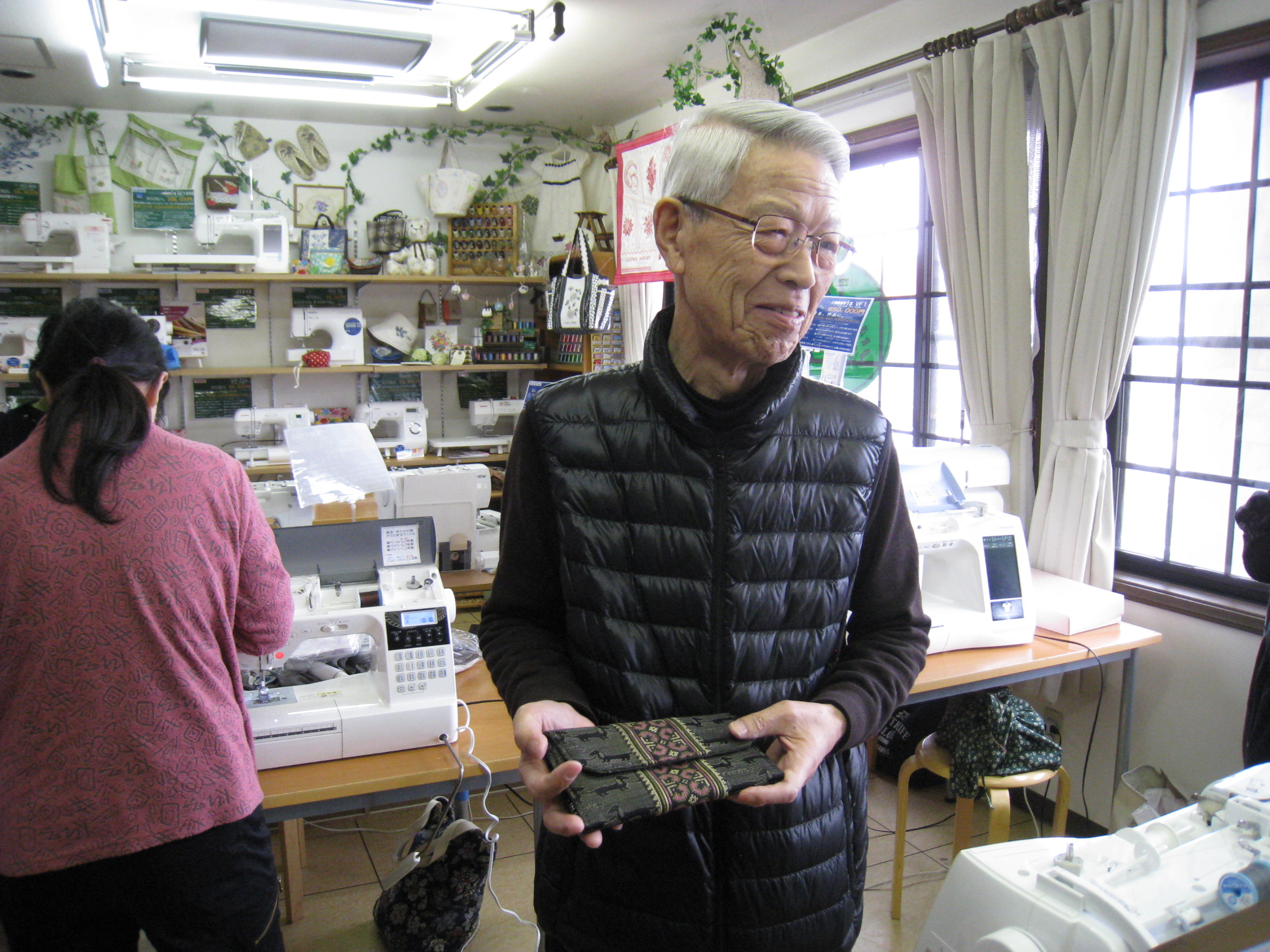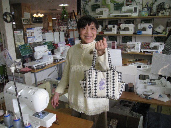 午前の部では、竹澤さんがお孫さんの『通園バッグ』を作成中です。もうすぐ2歳になる