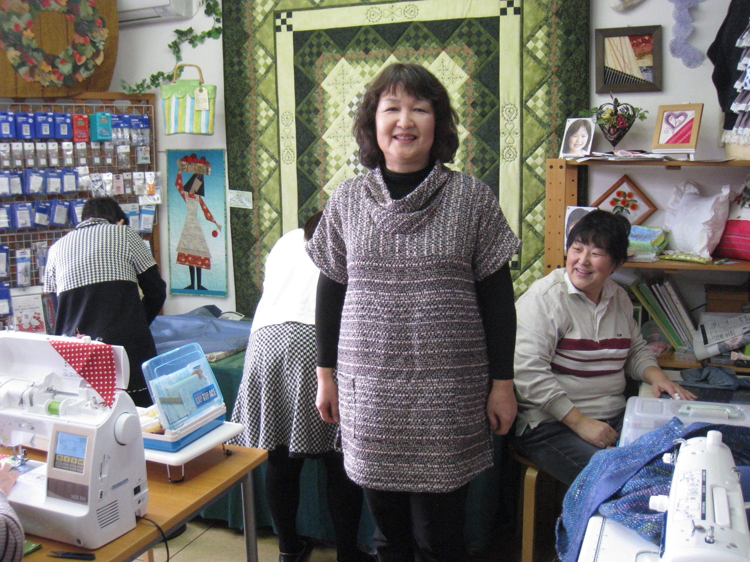 木村さんと松田さんは同じ型紙から作った『オーバーブラウス』を着て来店です。