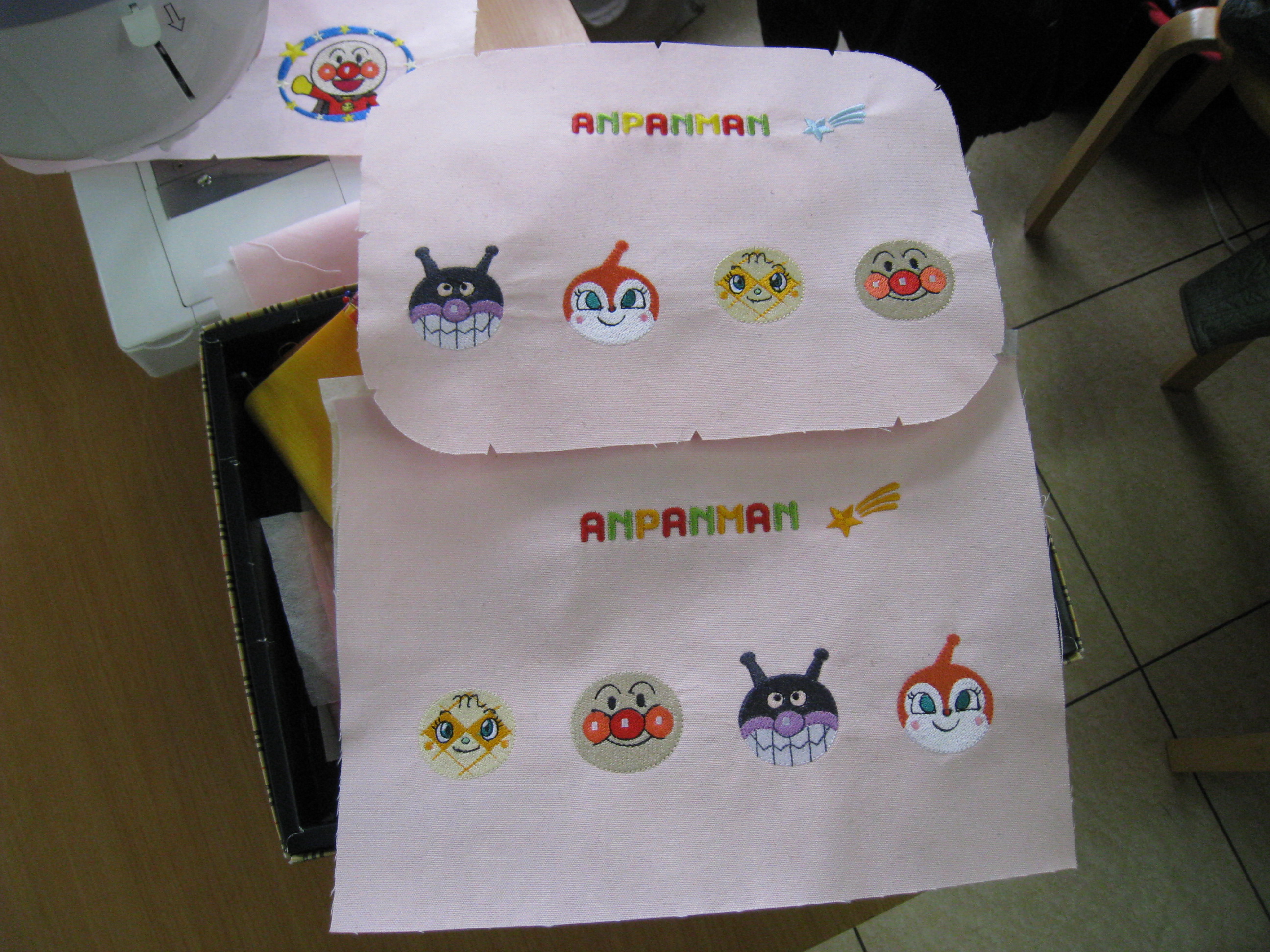 お孫さん。表にその刺しゅうを入れたのですが、特にアンパンマンとバイキンマンが好き
