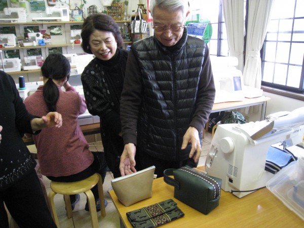 本日の講習会は7名の参加者でした。板垣さんがビニール素材で作ったポーチを完成!