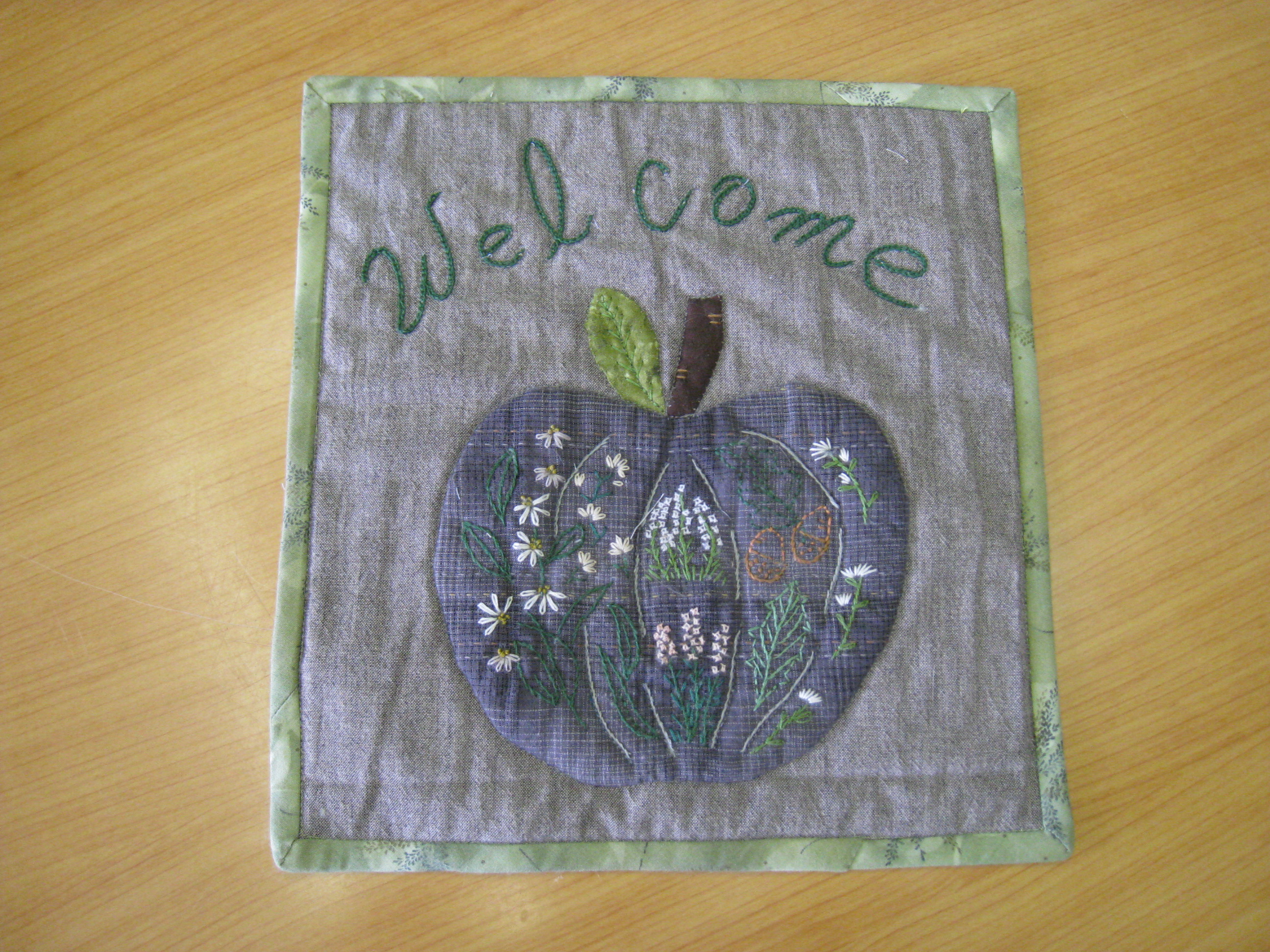 午前の部では、順子さんがタペストリー2種類をお披露目してくれました。ハンドキルト