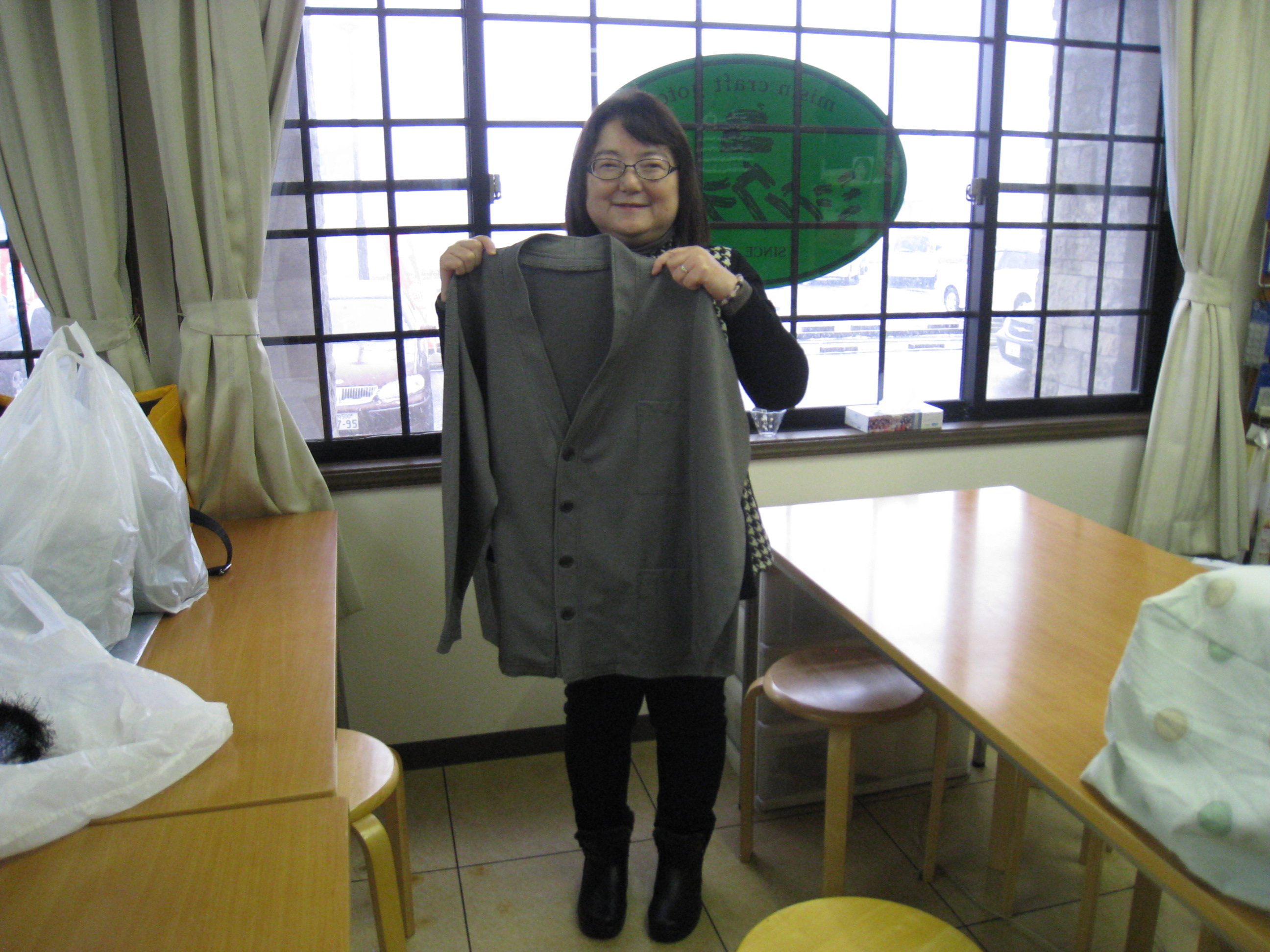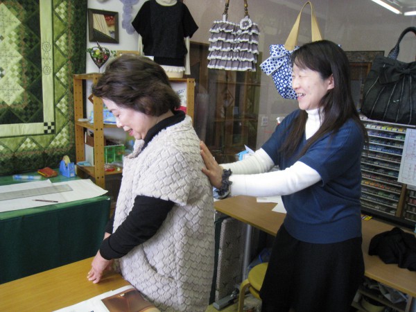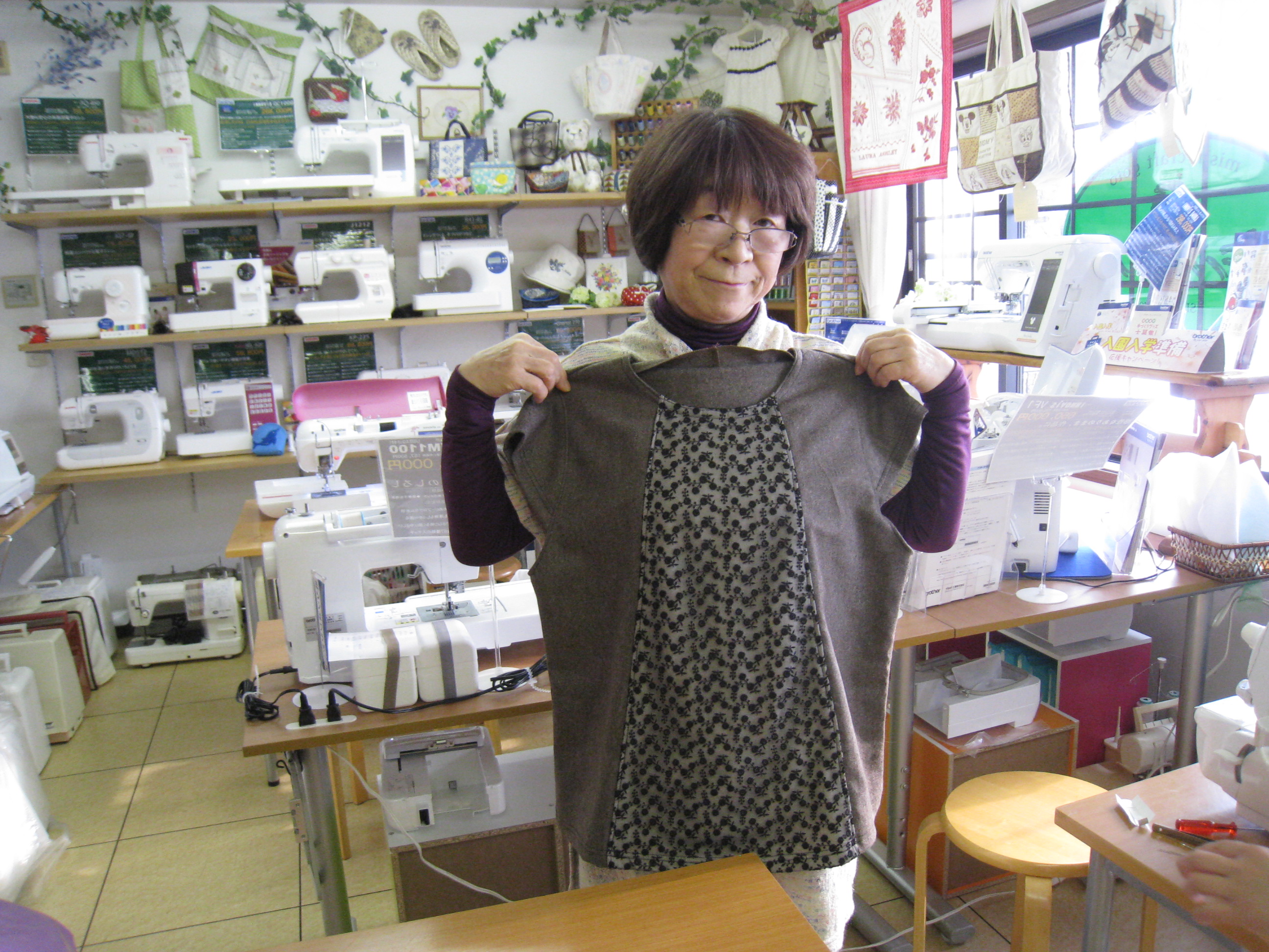 午前の部では、順子さんがプルオーバーをお披露目。以前特別講習会で作った物を