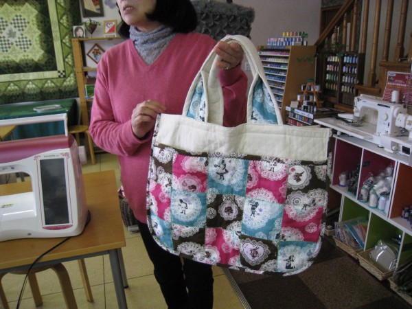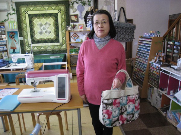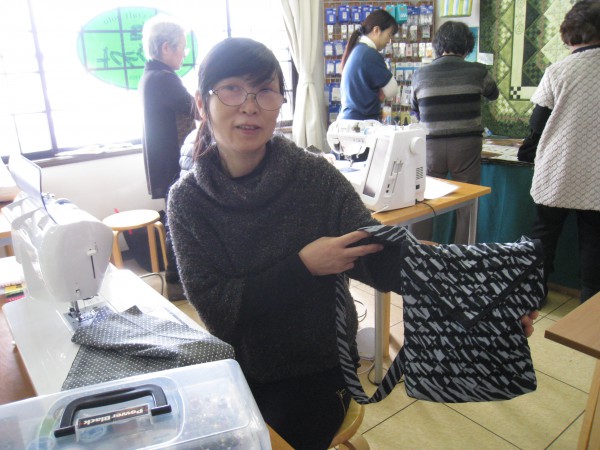 高橋さんは『うろこのポーチ』が完成です。これ特別講習会で作った後、生地を替えて