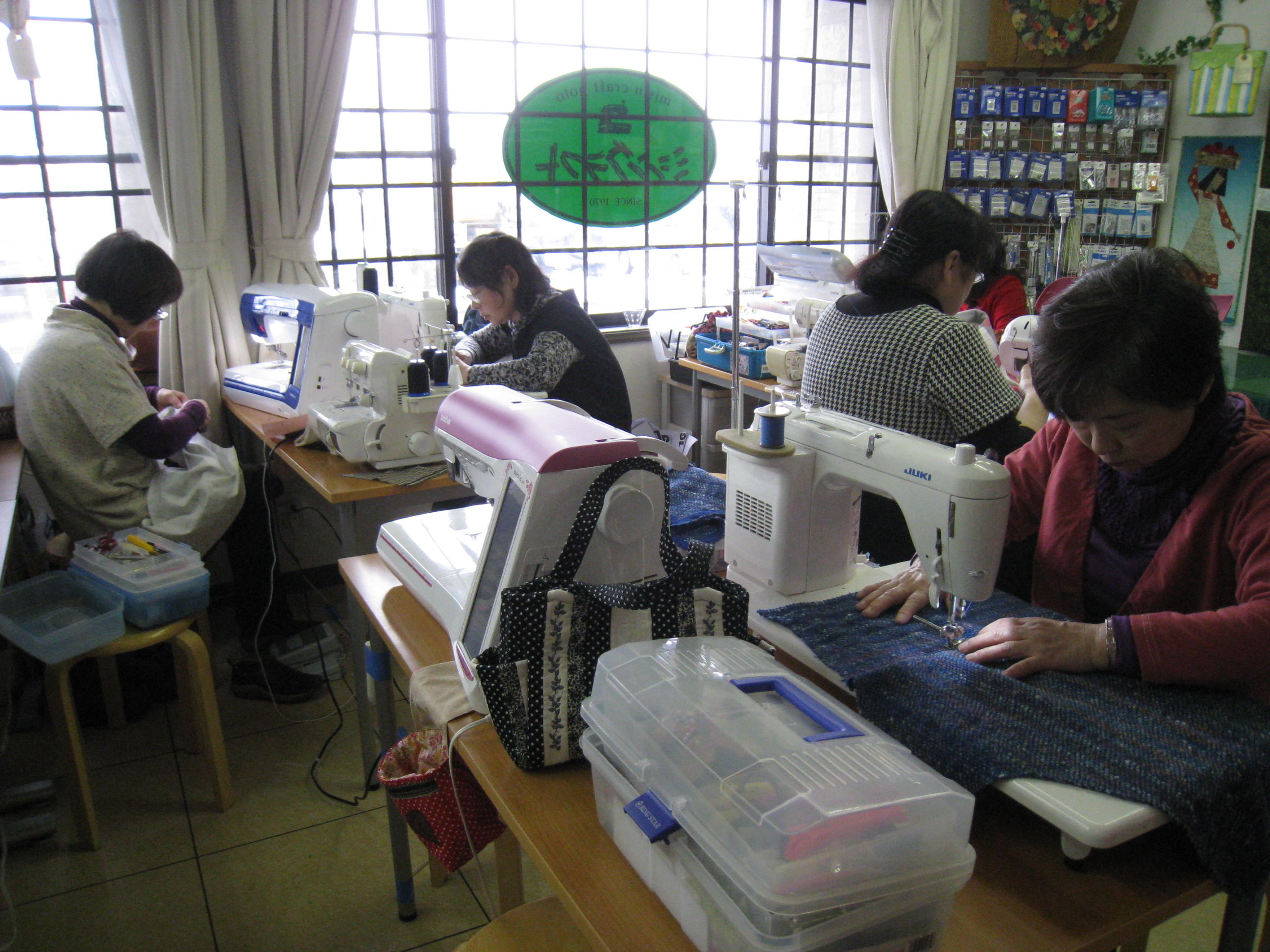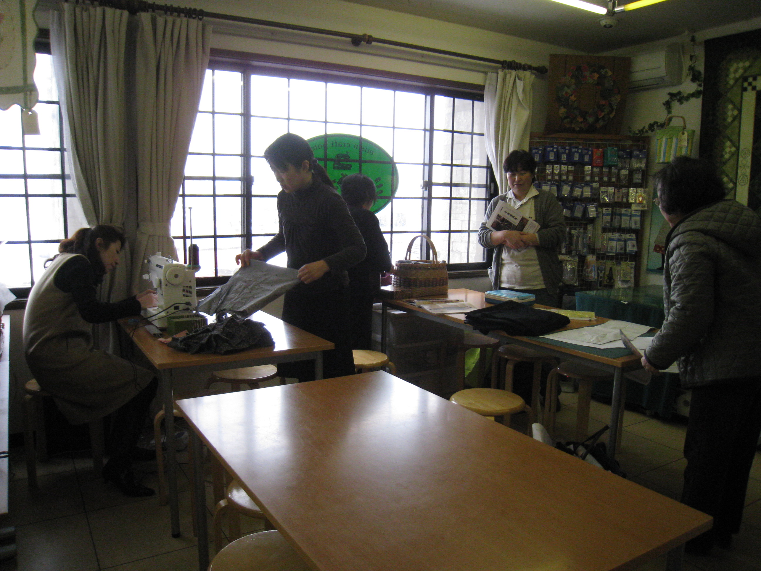 今日は、皆さん型紙取りと裁断の作業の日だったようで、ミシンはほとんど動いて