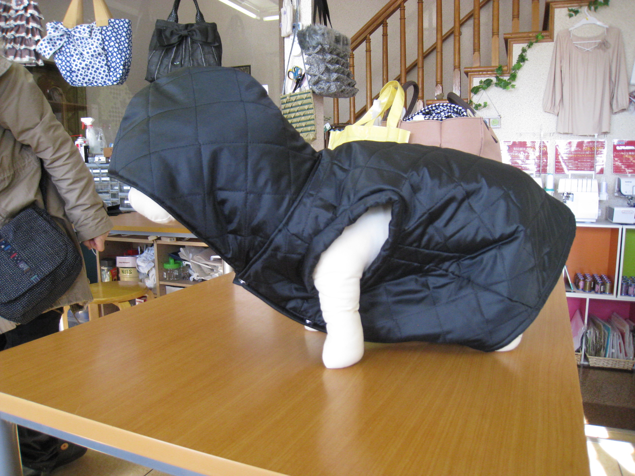 ワンちゃんのお散歩用『防寒着』を見せてくれました。奥さんの親戚から頼まれた