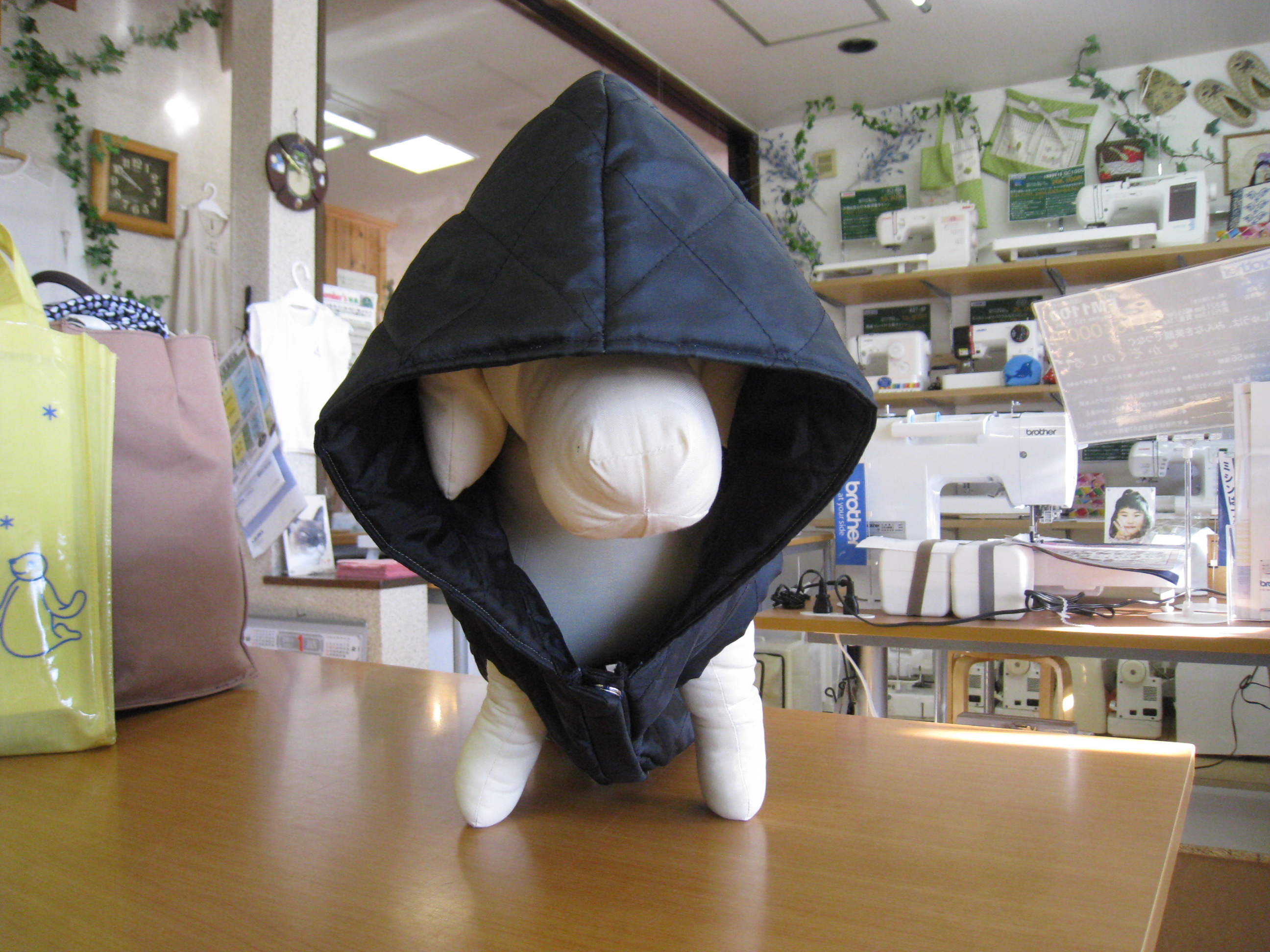 そうで、フード付きで、なおかつ綿入りの生地でとても暖かそうです。これを着た