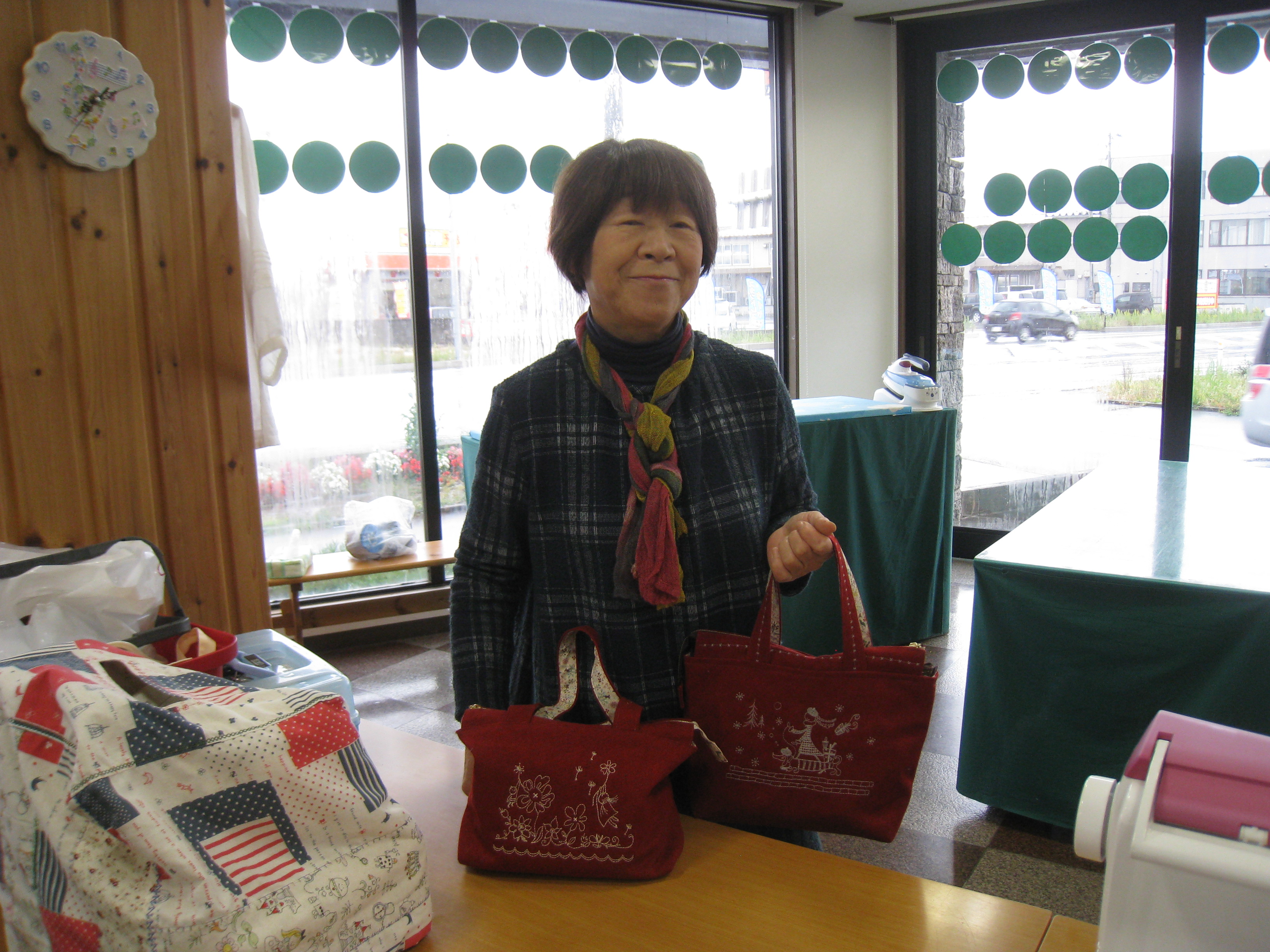 朝一番で順子さんが『バッグ』をお披露目してくれました。前、特別講習会で作った物を
