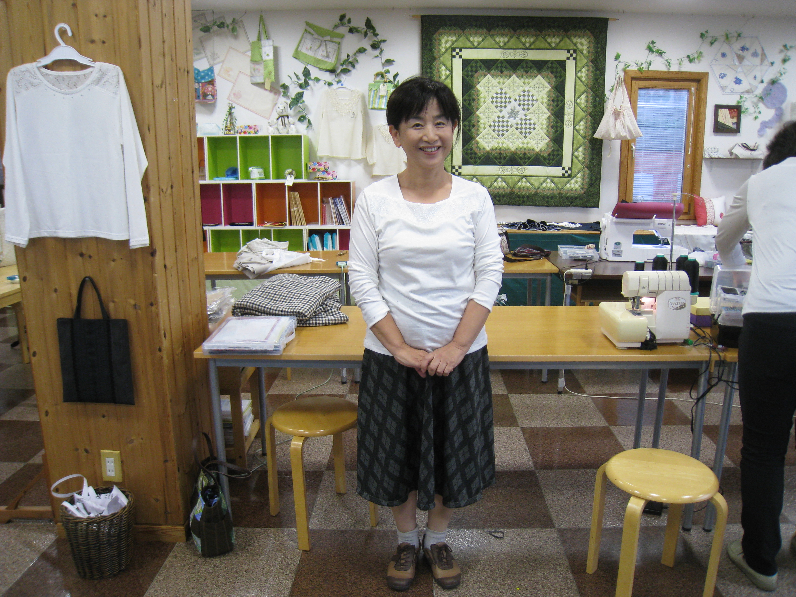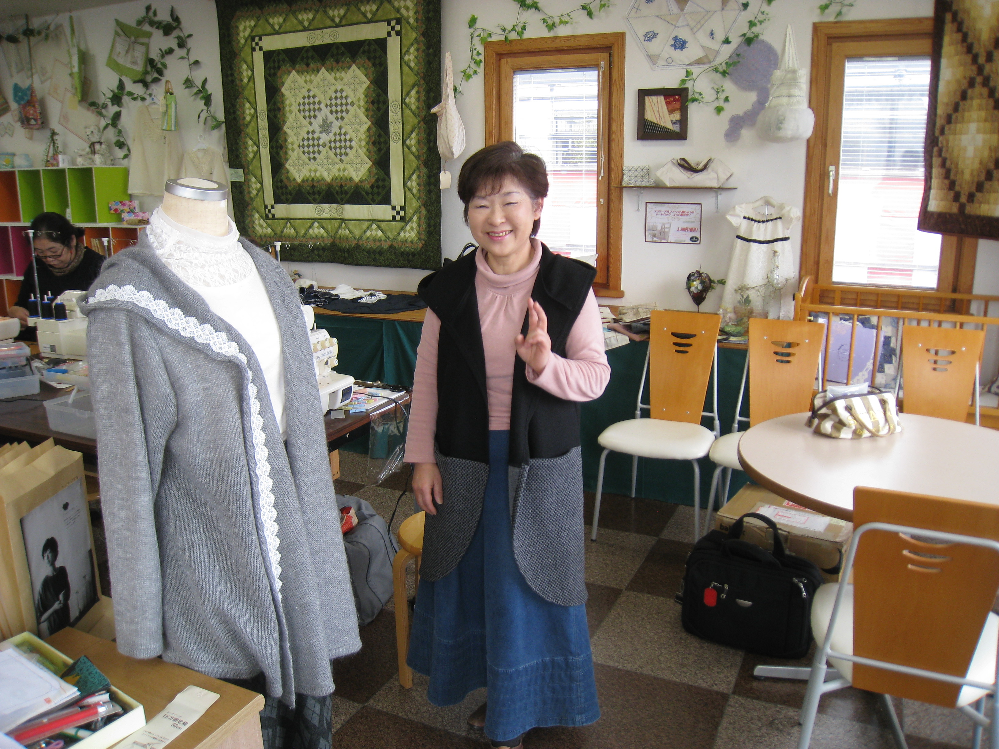 粕谷さんは『ブラウス』を完成させて、それを着て来店。『ちょっと子供っぽくない