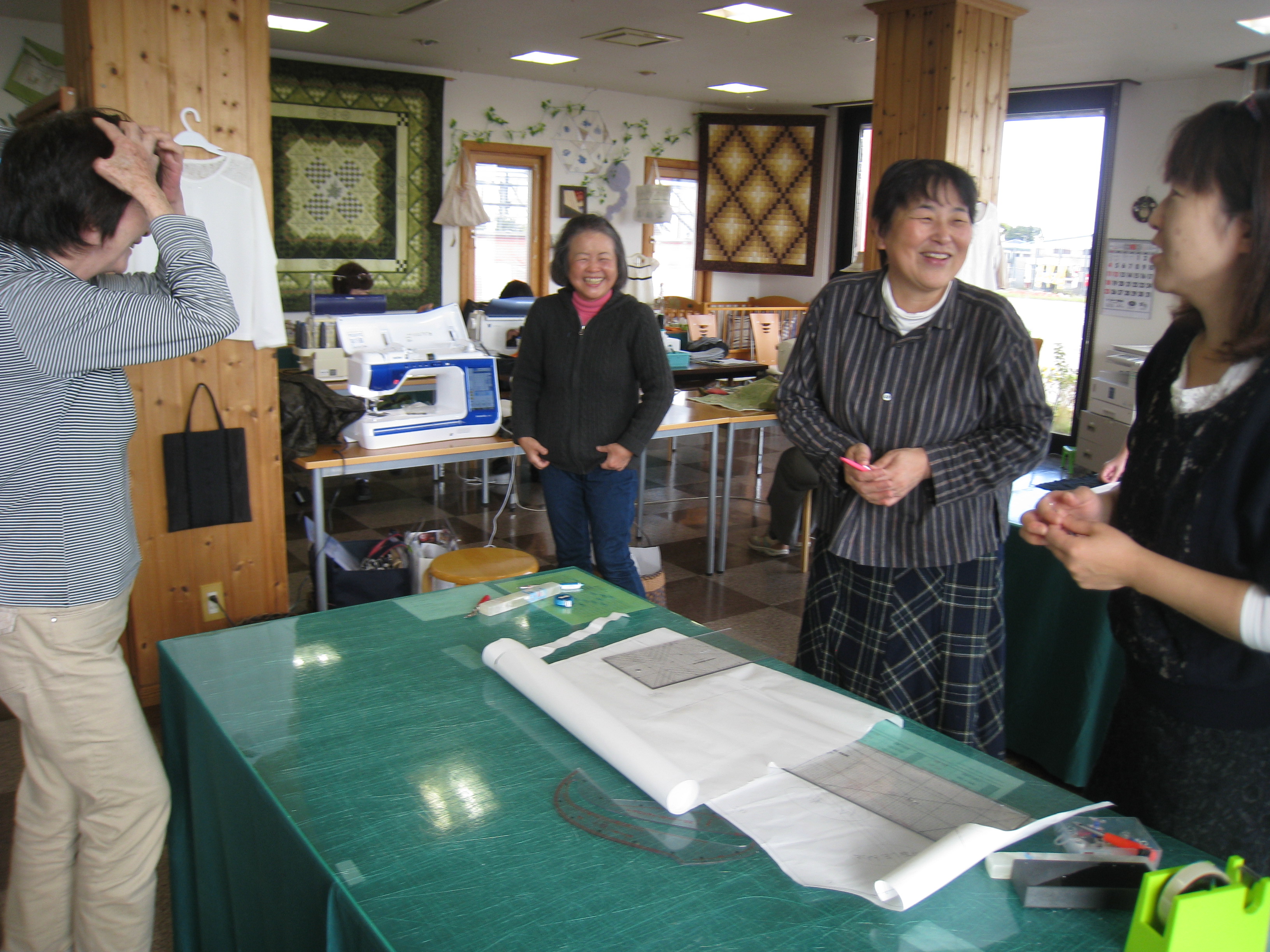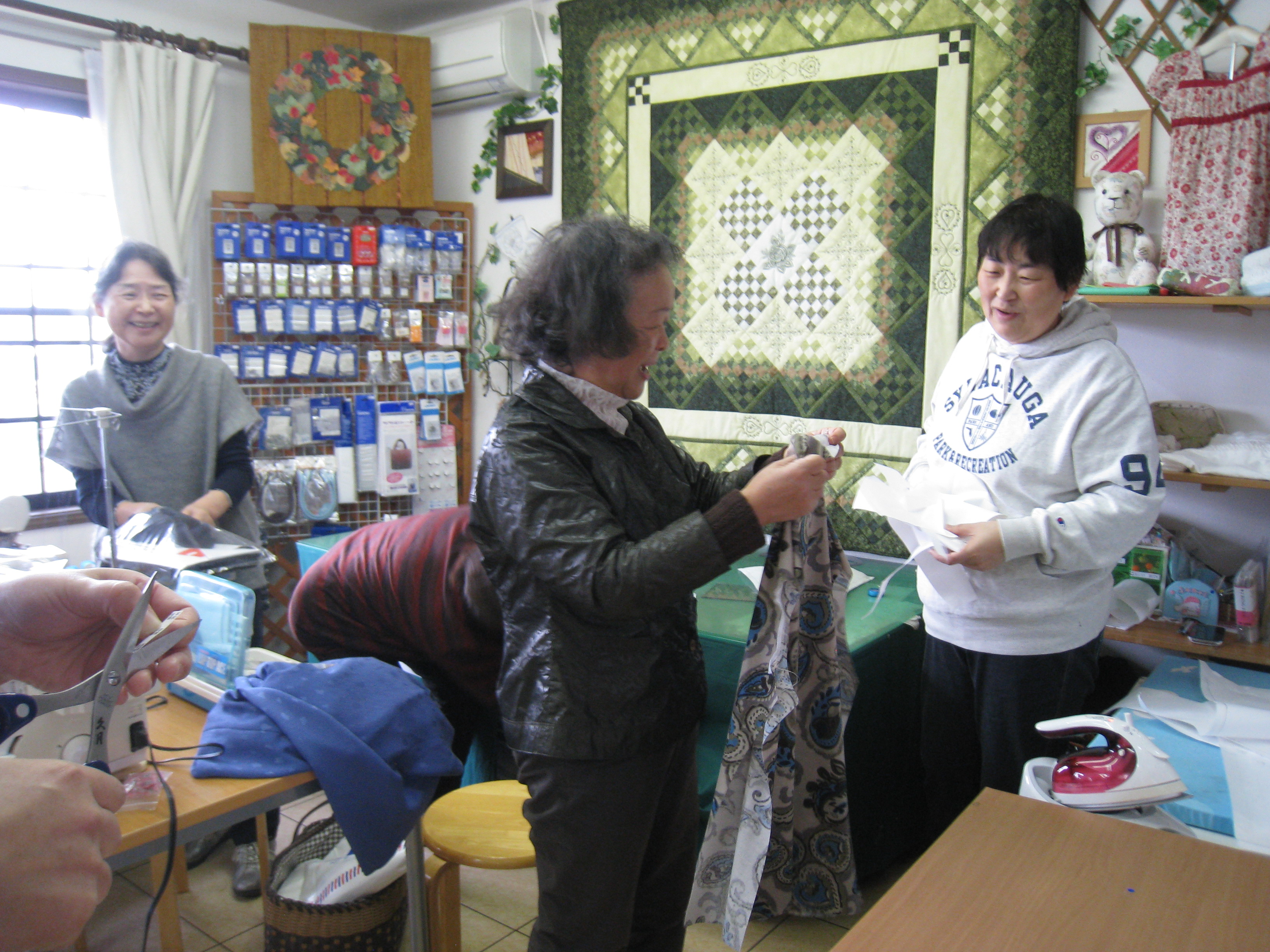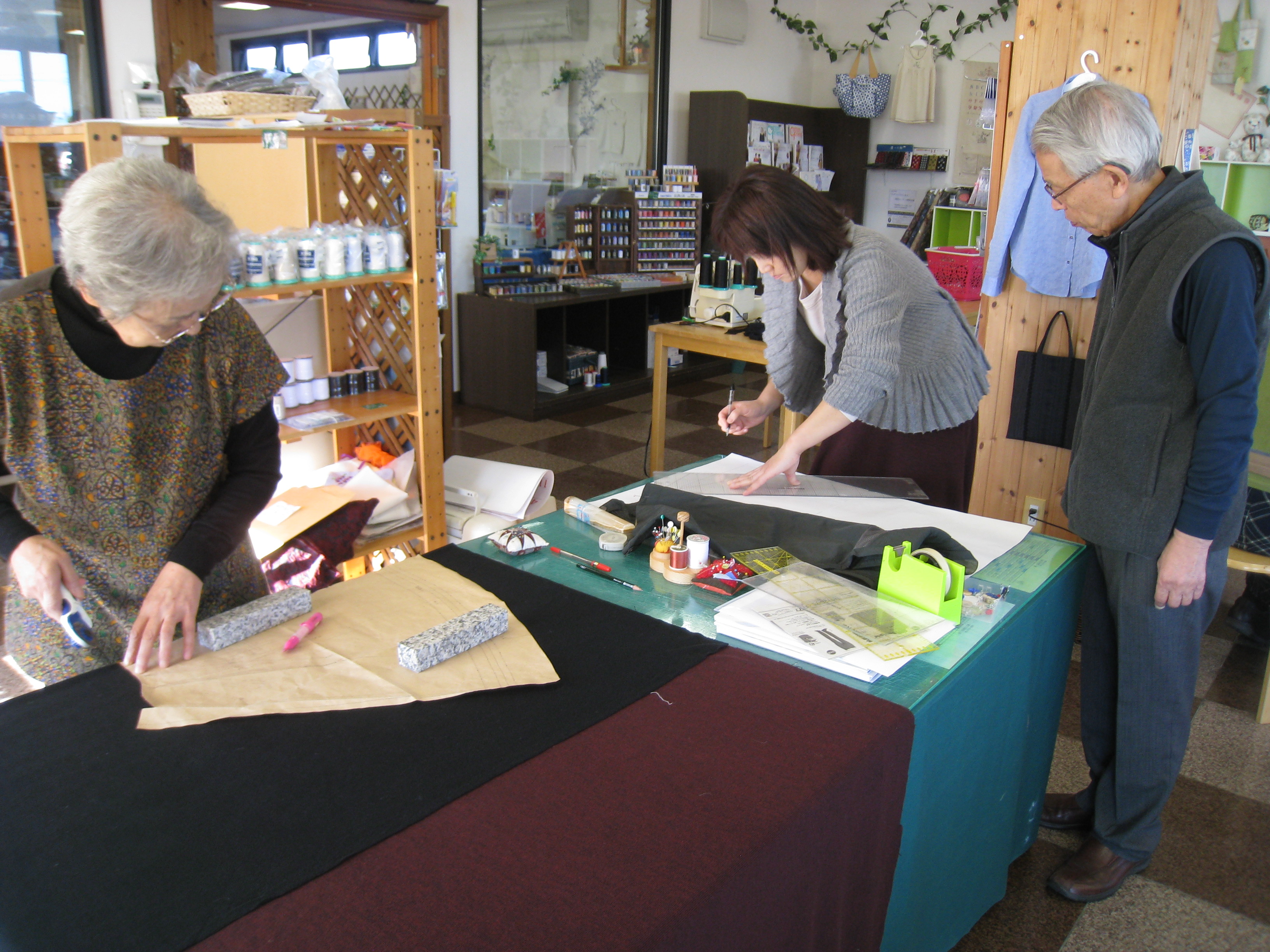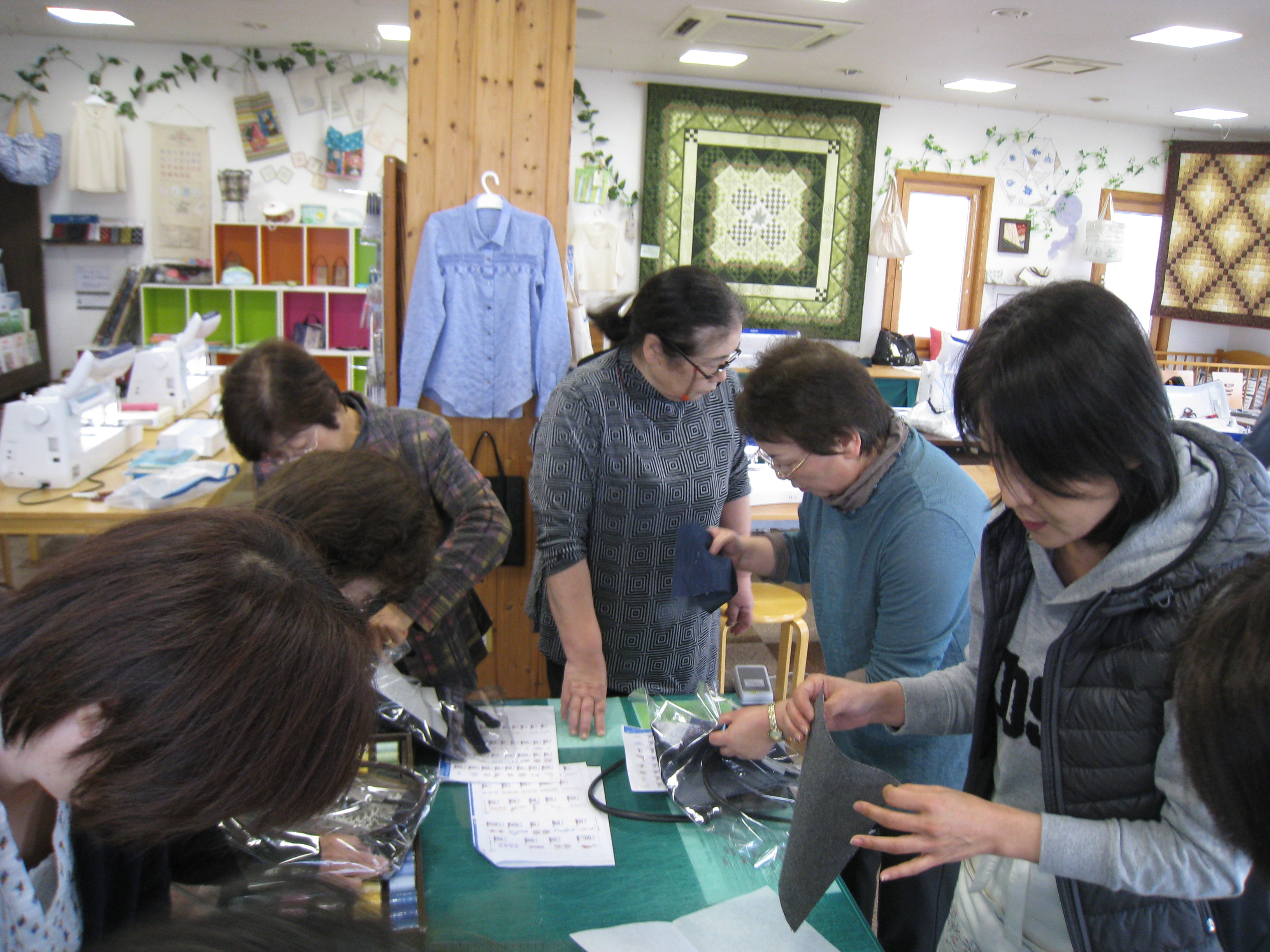 訪問させていただきました。皆さん生地を相当買ってきたようです。これから皆さん