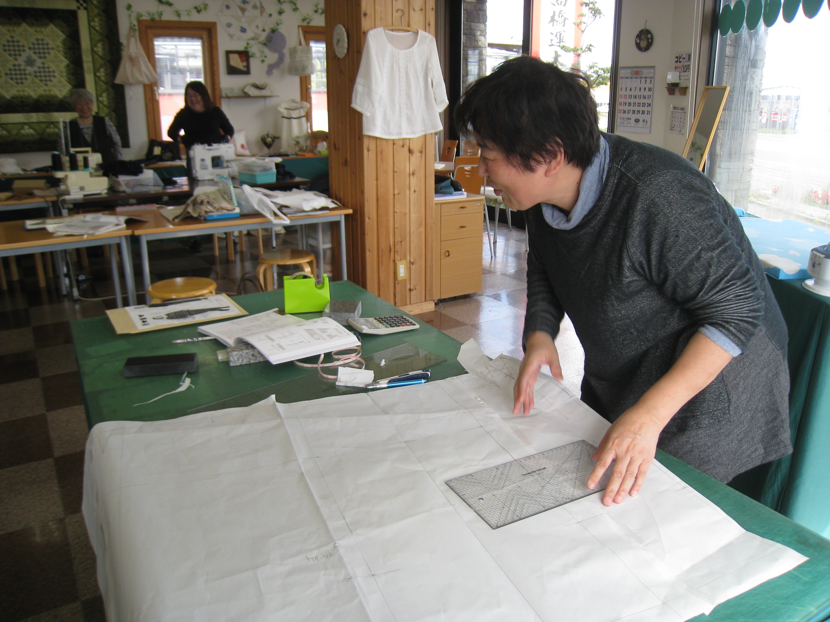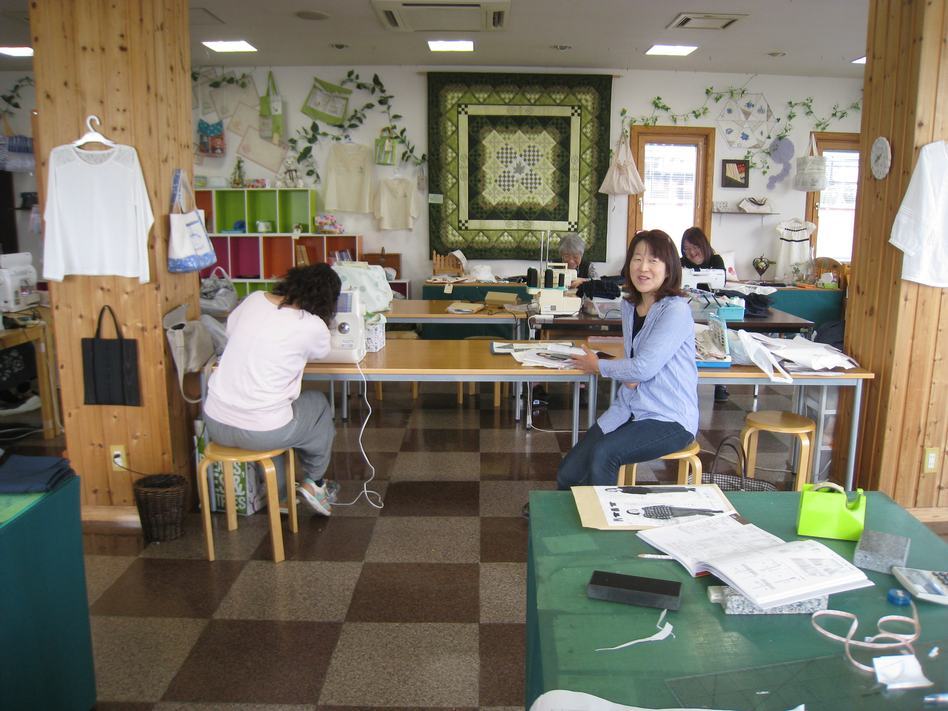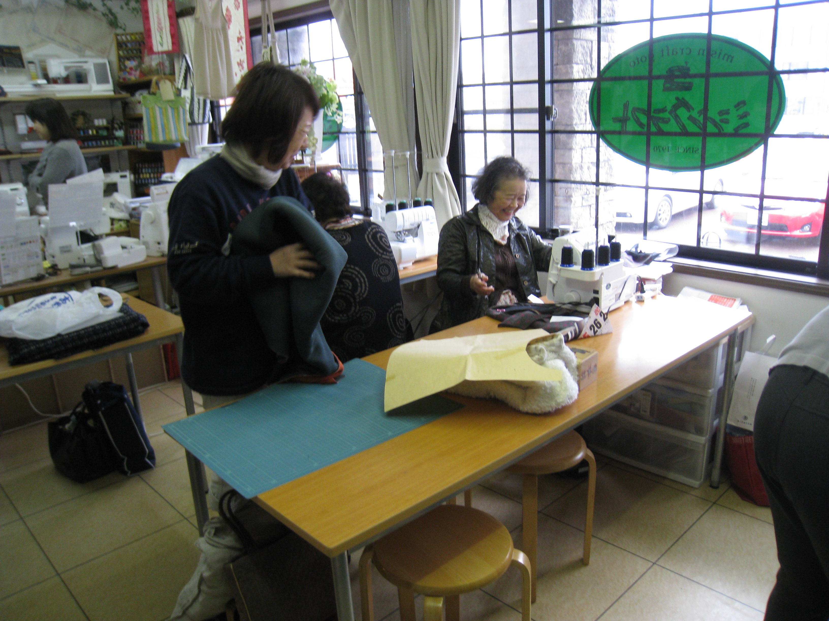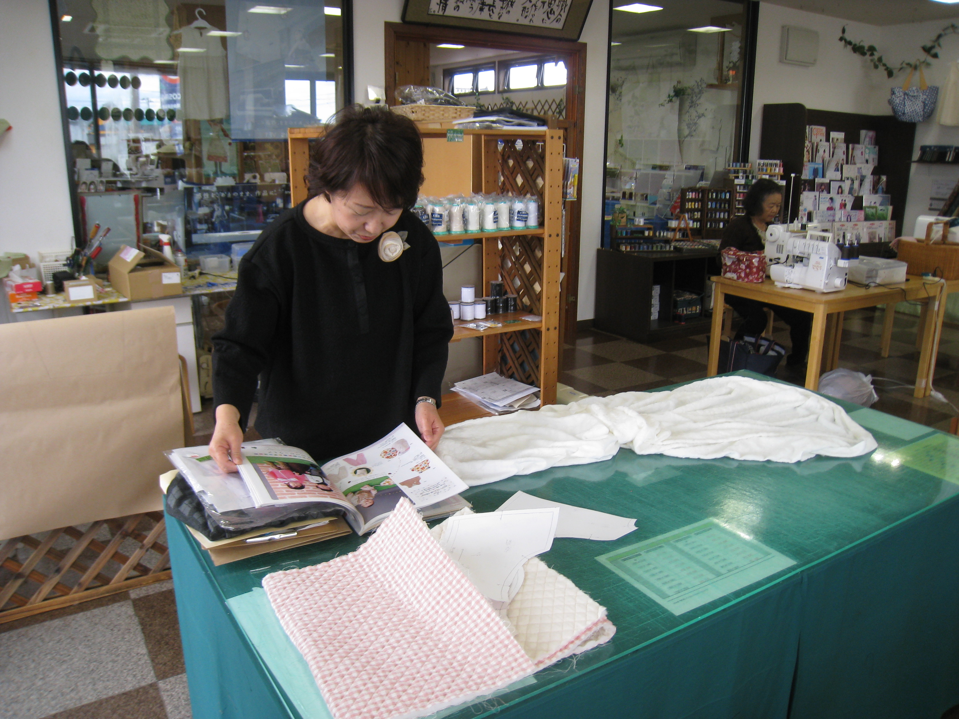 訪問させていただきました。皆さん生地を相当買ってきたようです。これから皆さん