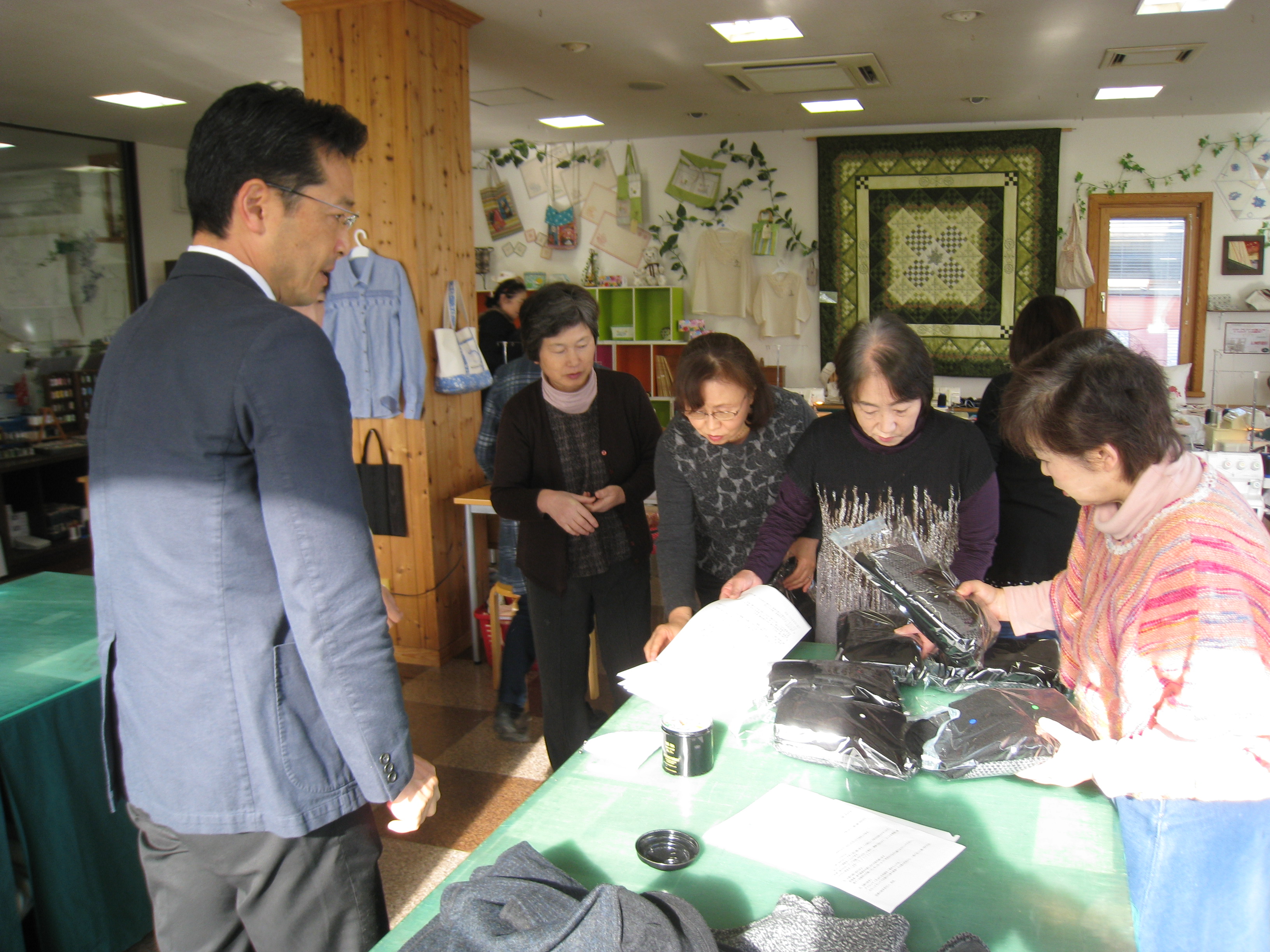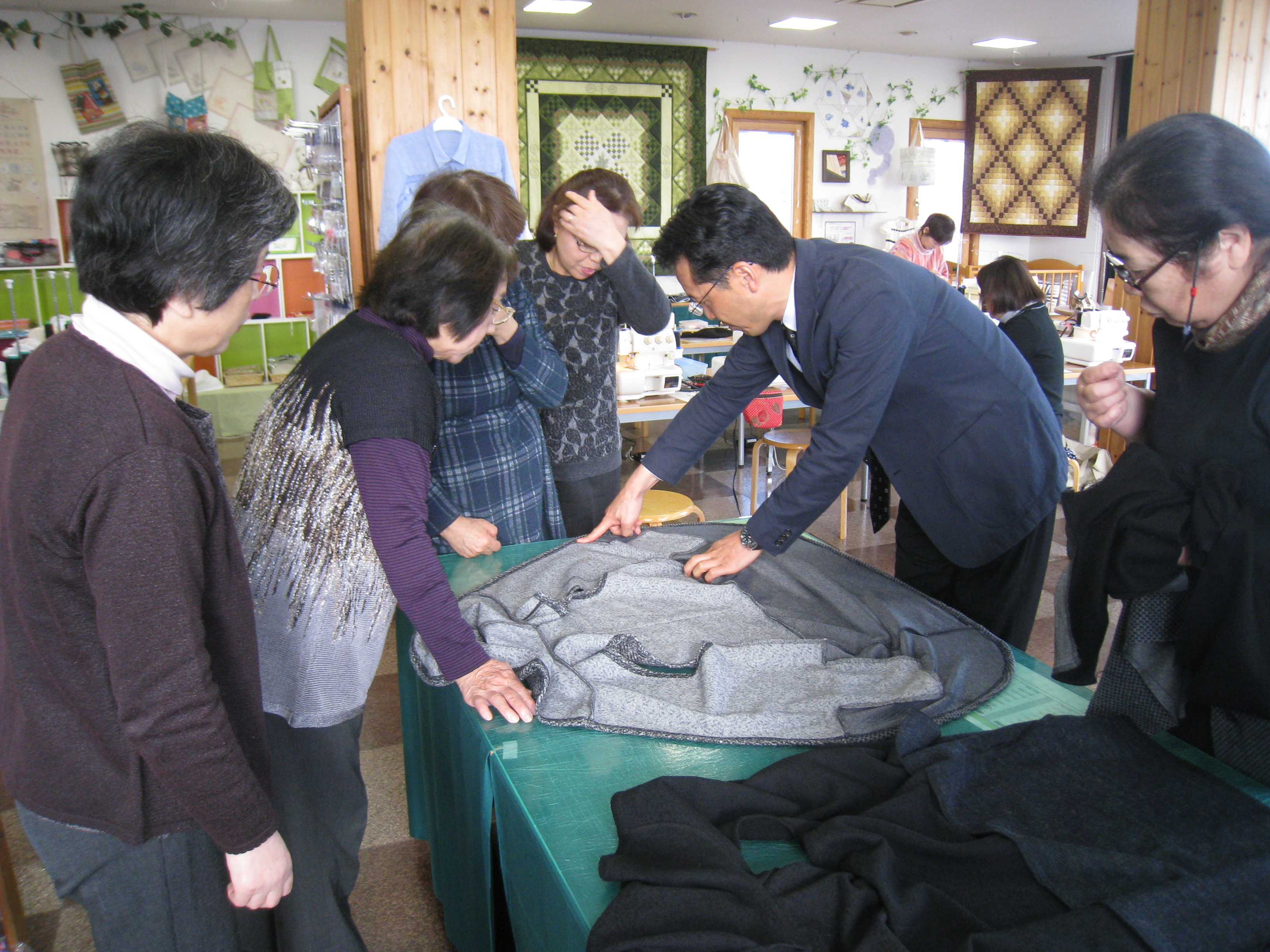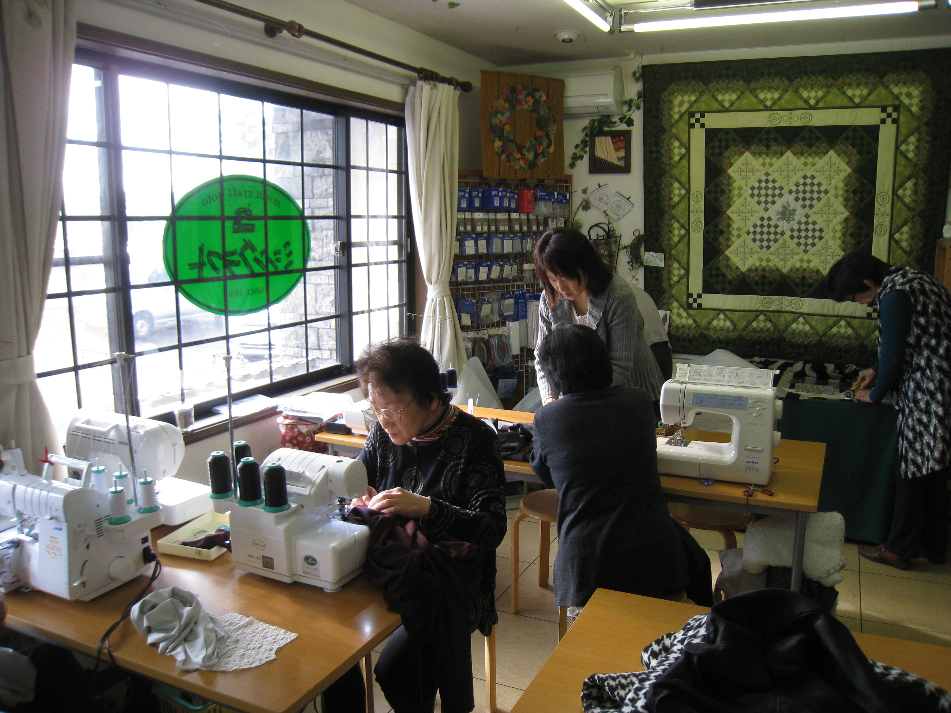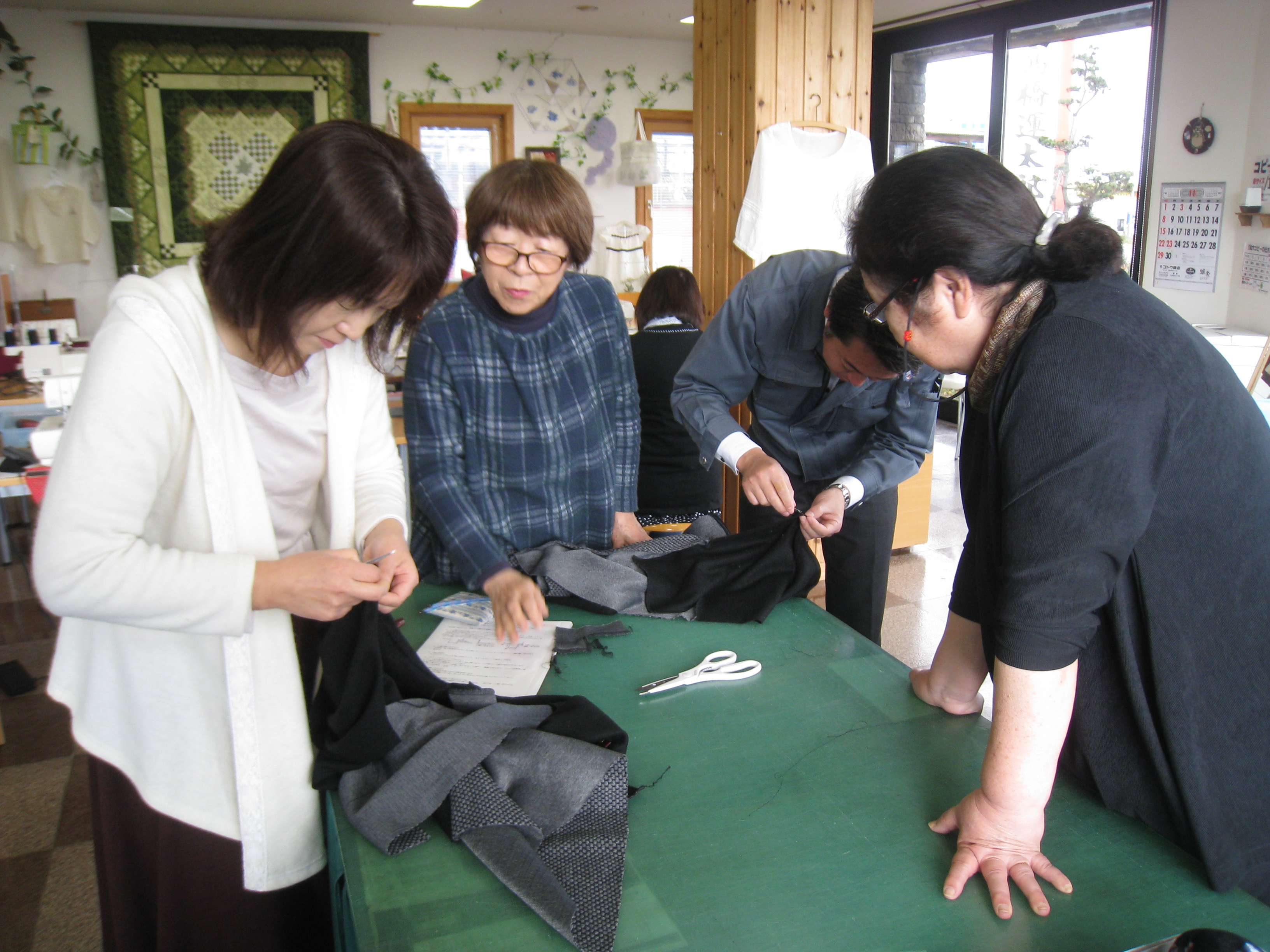 訪問させていただきました。皆さん生地を相当買ってきたようです。これから皆さん