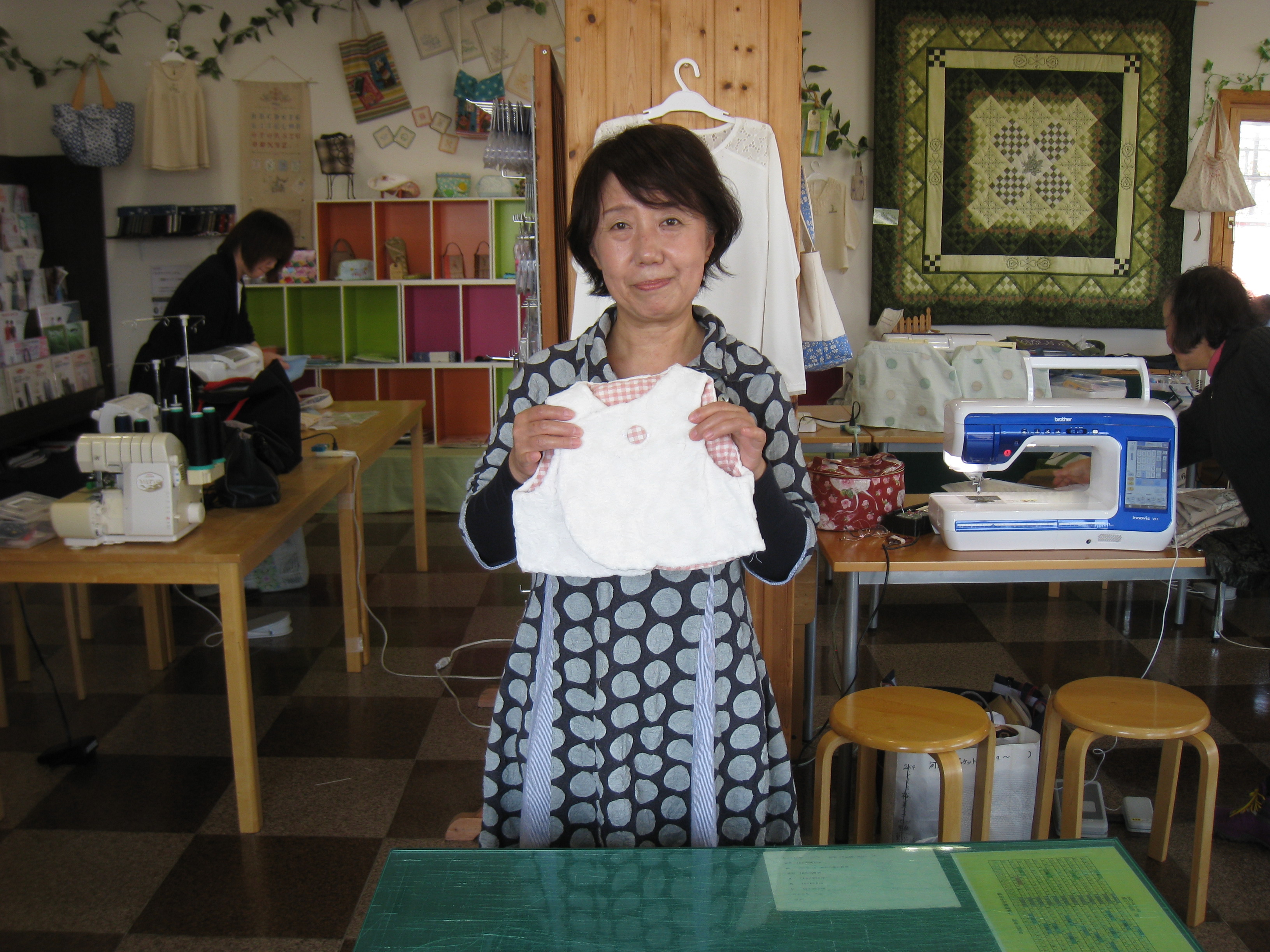 奥山さんは先週から作成中の『ベビーベスト』を今日中に完成させなくっちゃと張り