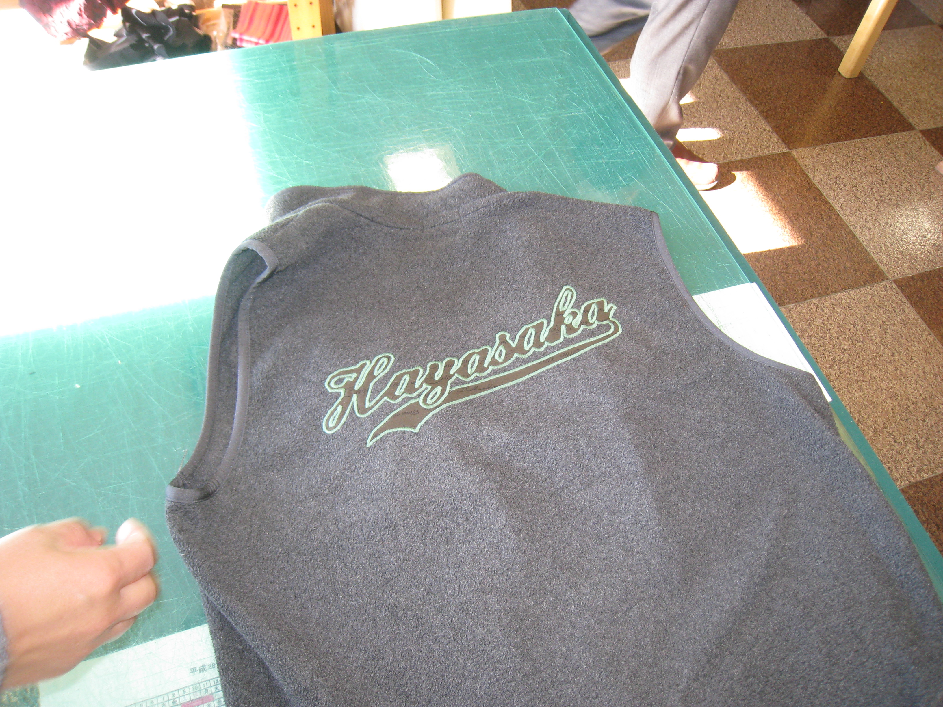 『HAYASAKA』と刺しゅうを入れています。ユニクロで買ったベストに、先日の『刺