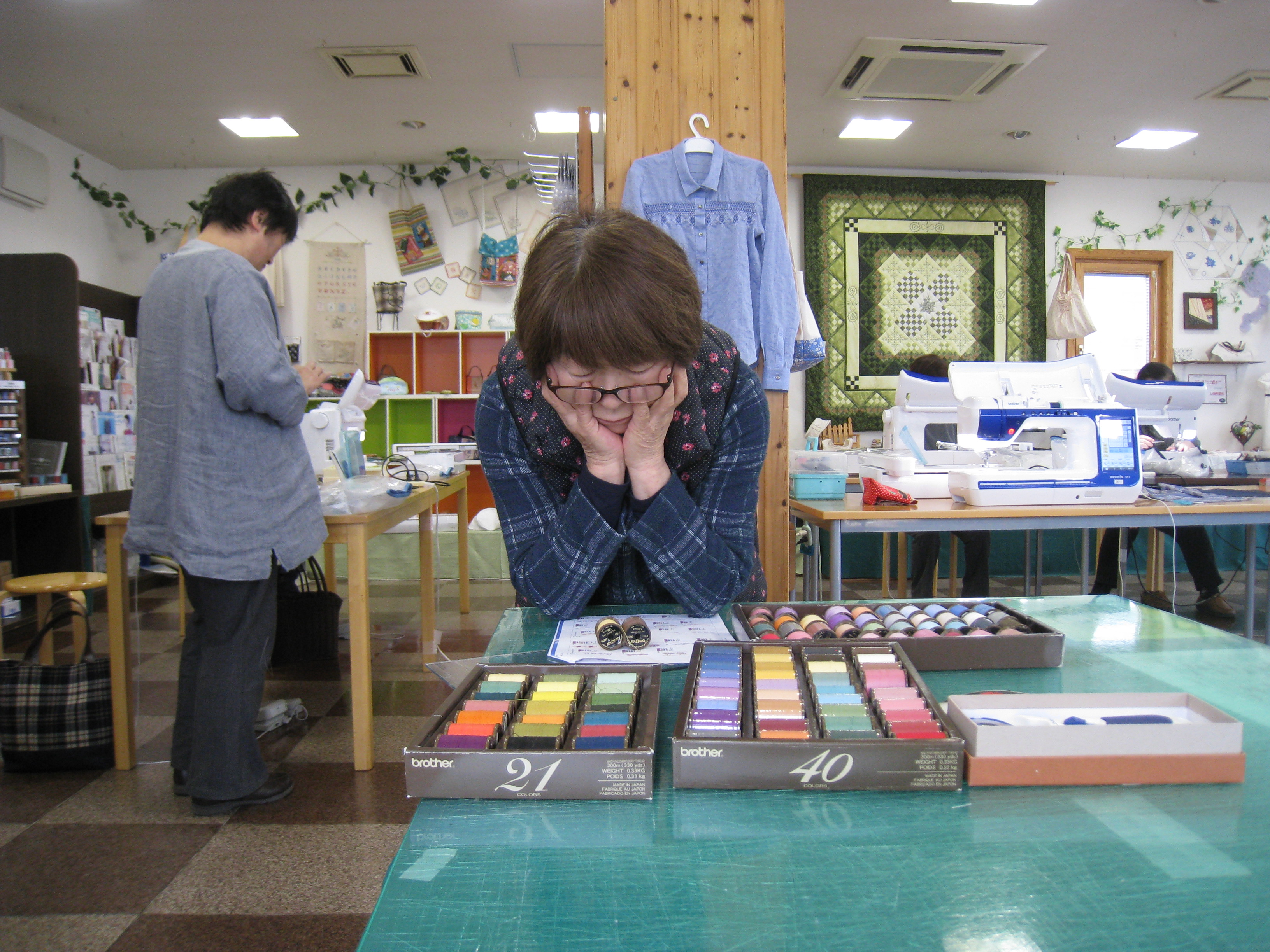 『地の色が黒っぽいから刺しゅうの色をこんな色にして、こっちの色は・・・』と独り言