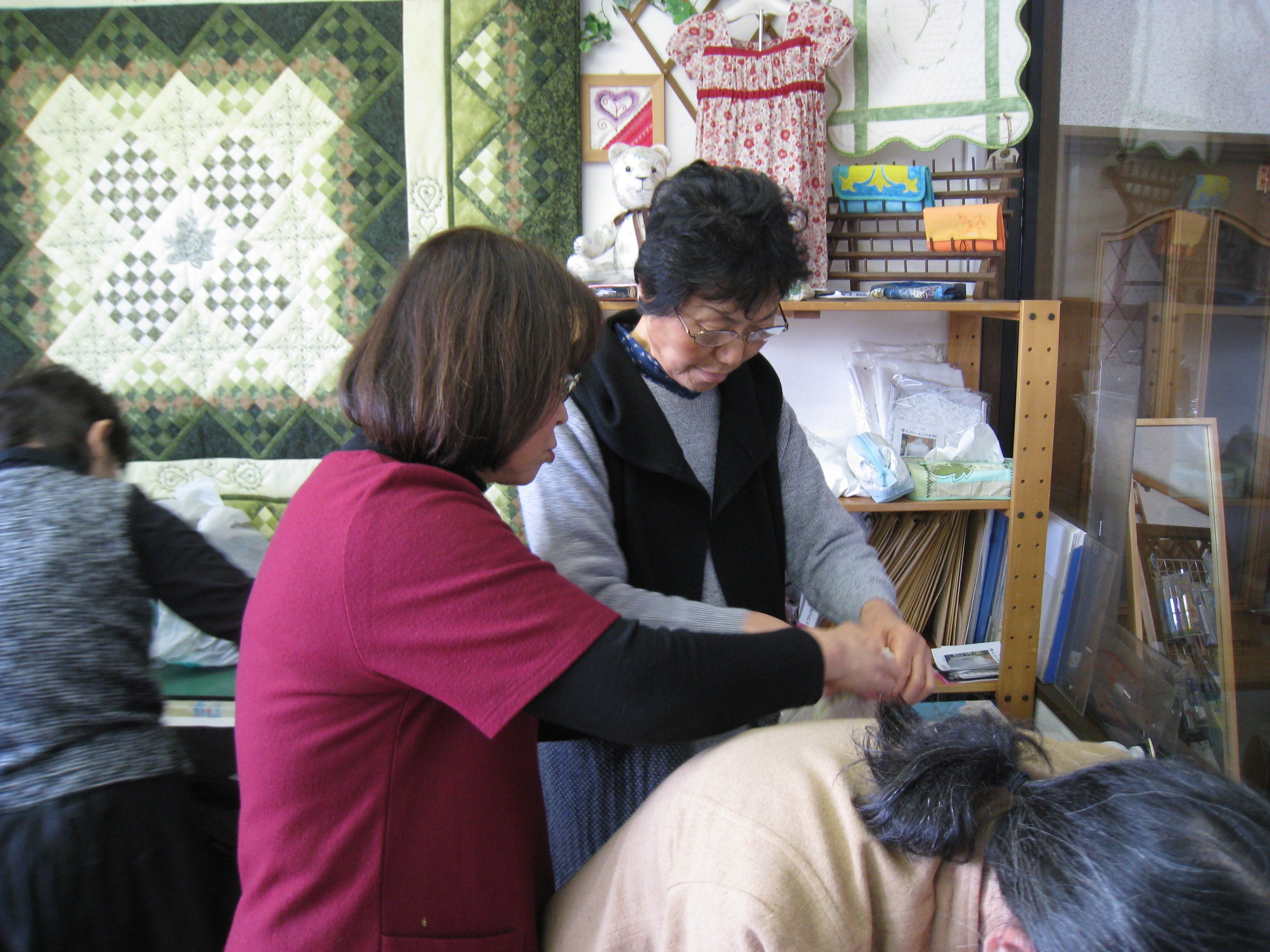 感じがします。伊藤さんも出来上がったキルトに久しぶりに刺しゅうを入れました。