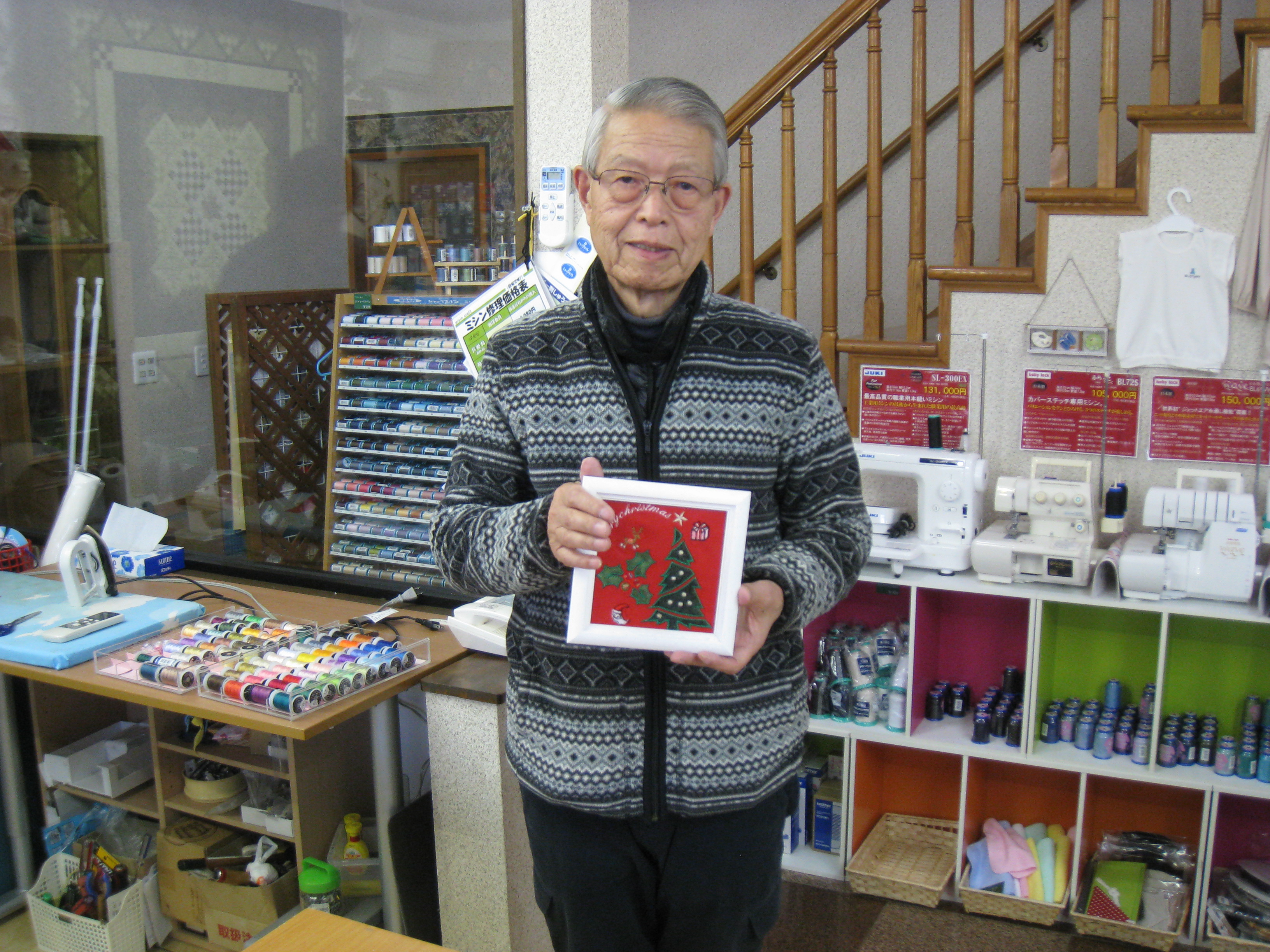 してくれました。これ、息子さん宅へのプレゼントで作ったもので、単色の刺しゅうが