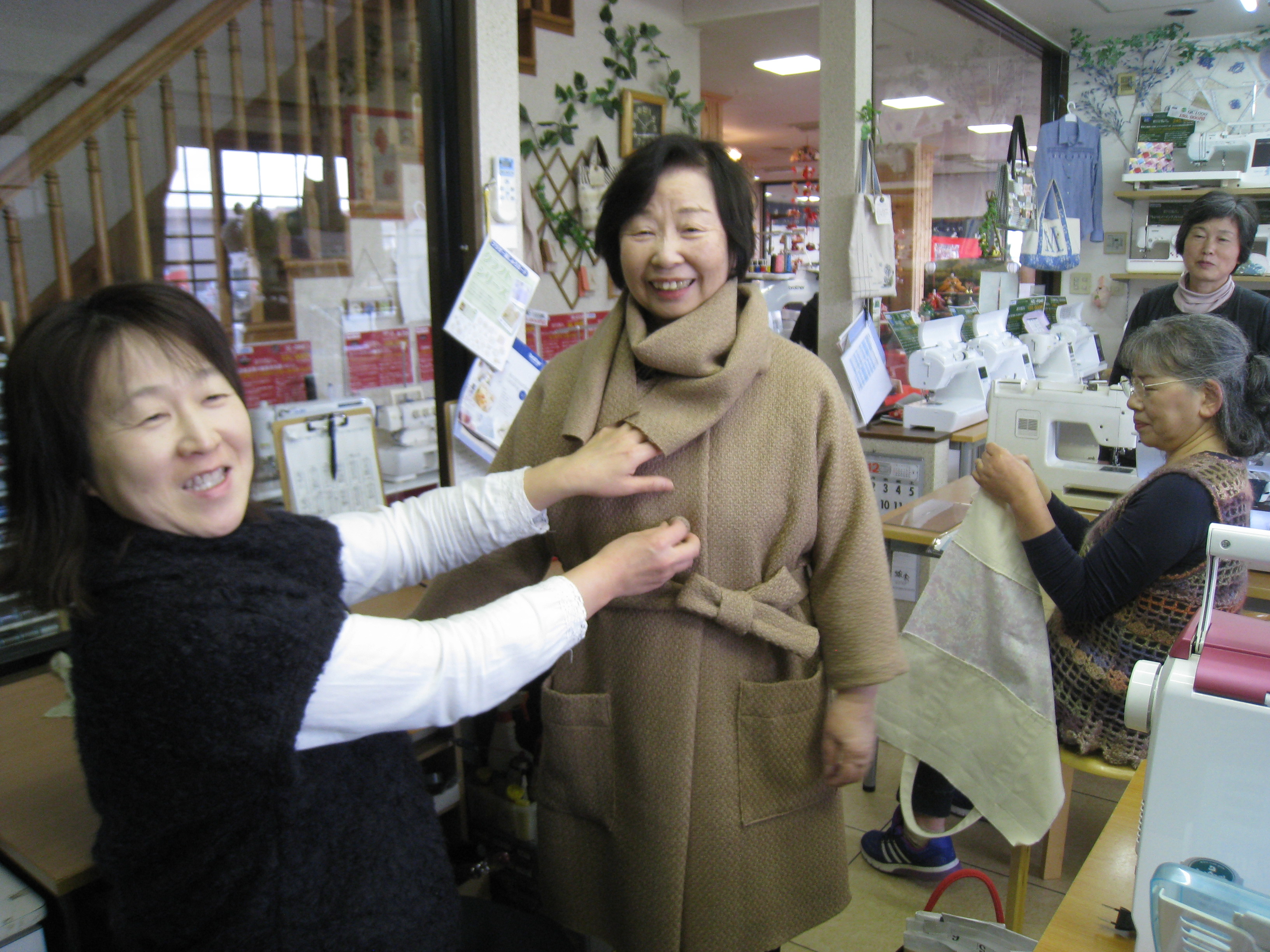 百瀬さんは『コート』がほぼ完成!残すところは飾りボタンをどの位置に付けるか?
