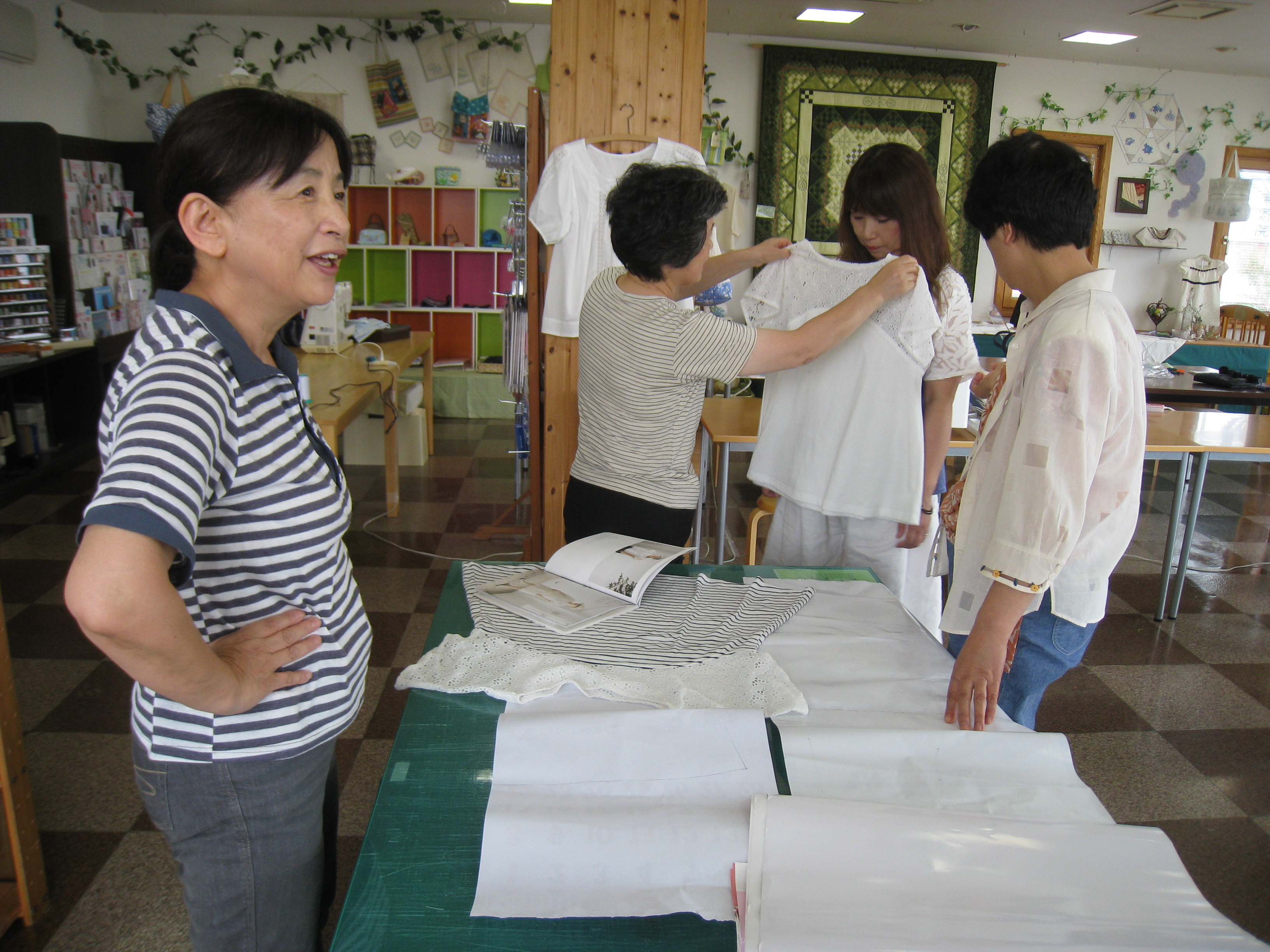 吉住さんはチュニックを完成して来ました。着々と服作りに励んでいて、こちらまで嬉し
