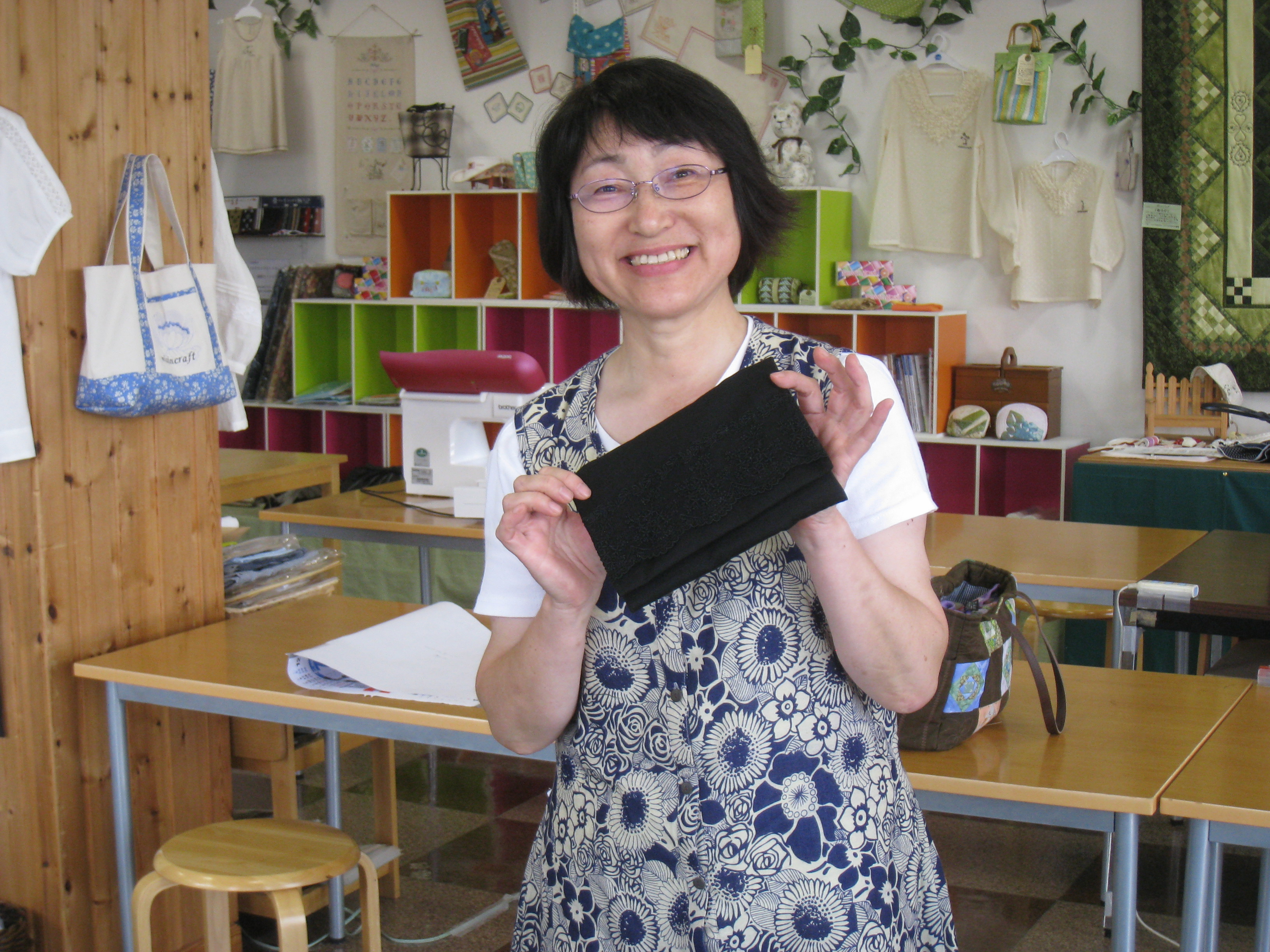 午後の部では、通常講習と一緒に『黒地にレースをあしらったポーチ』のミニ講習会