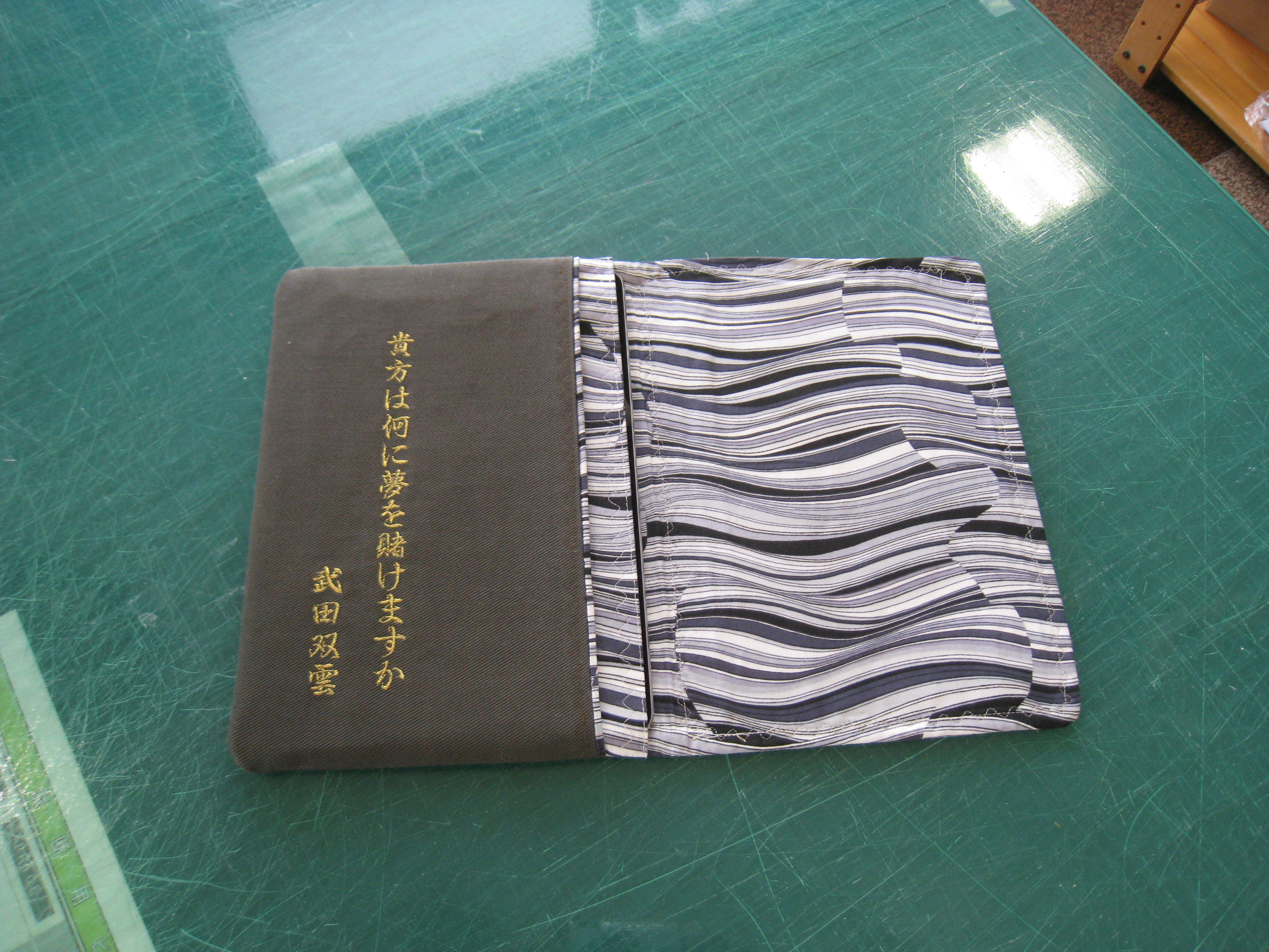 くれました。『武田双雲さん』の書?作品?を刺しゅうプロで作成して表紙と見開きに