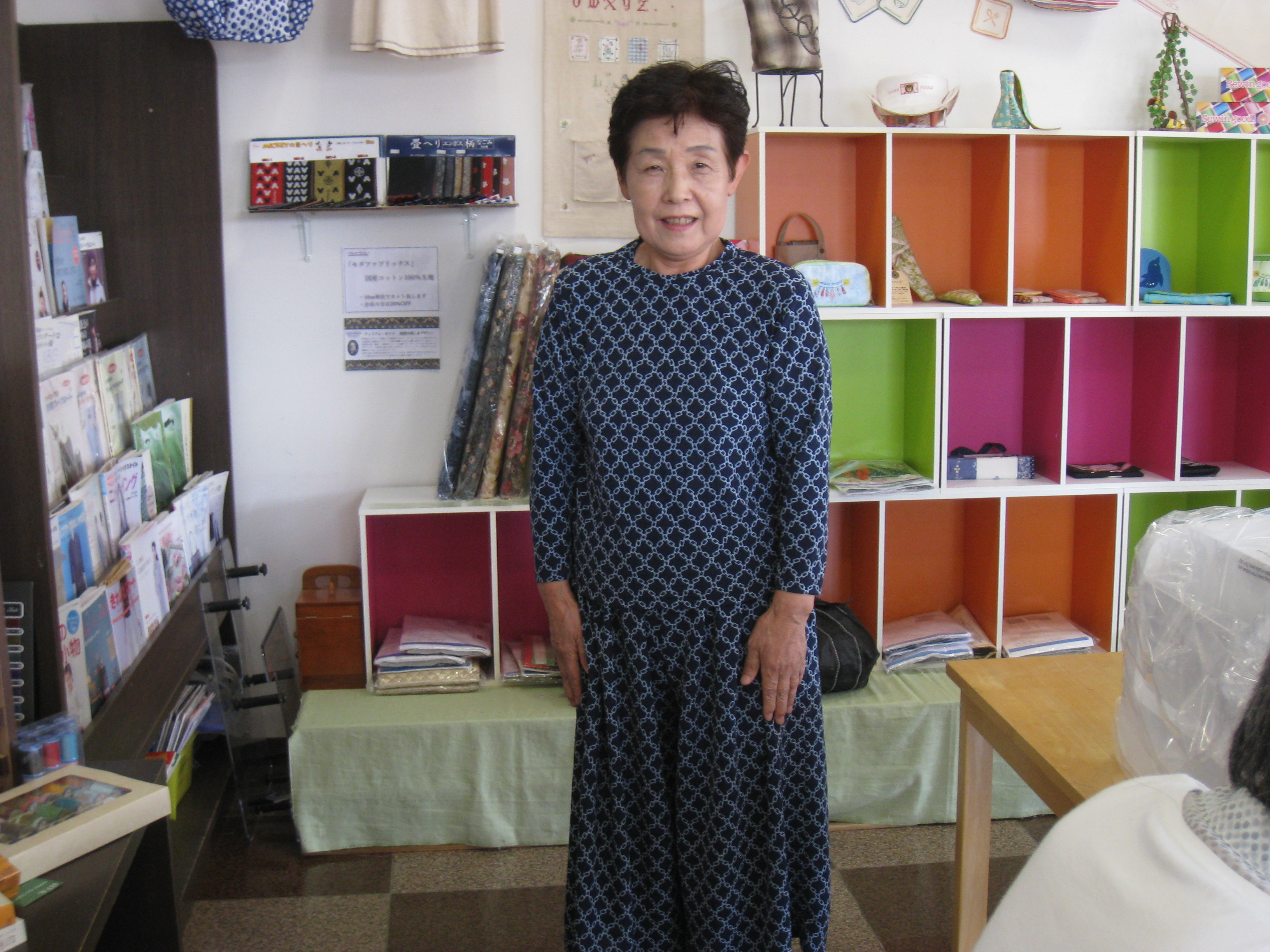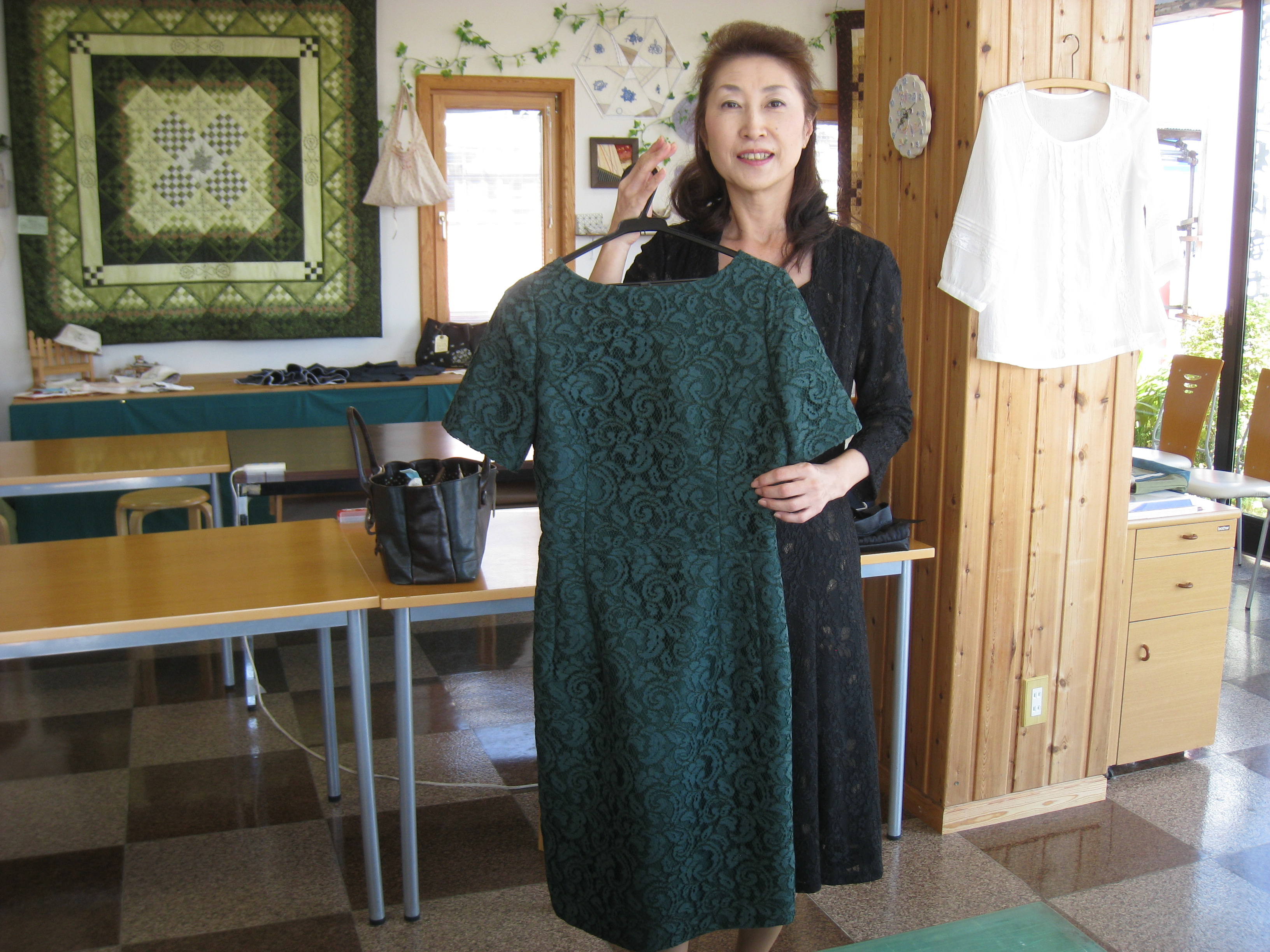 出来上がったワンピースを着て来店の工藤さんはそれ以外にも、もう一着を完成させて