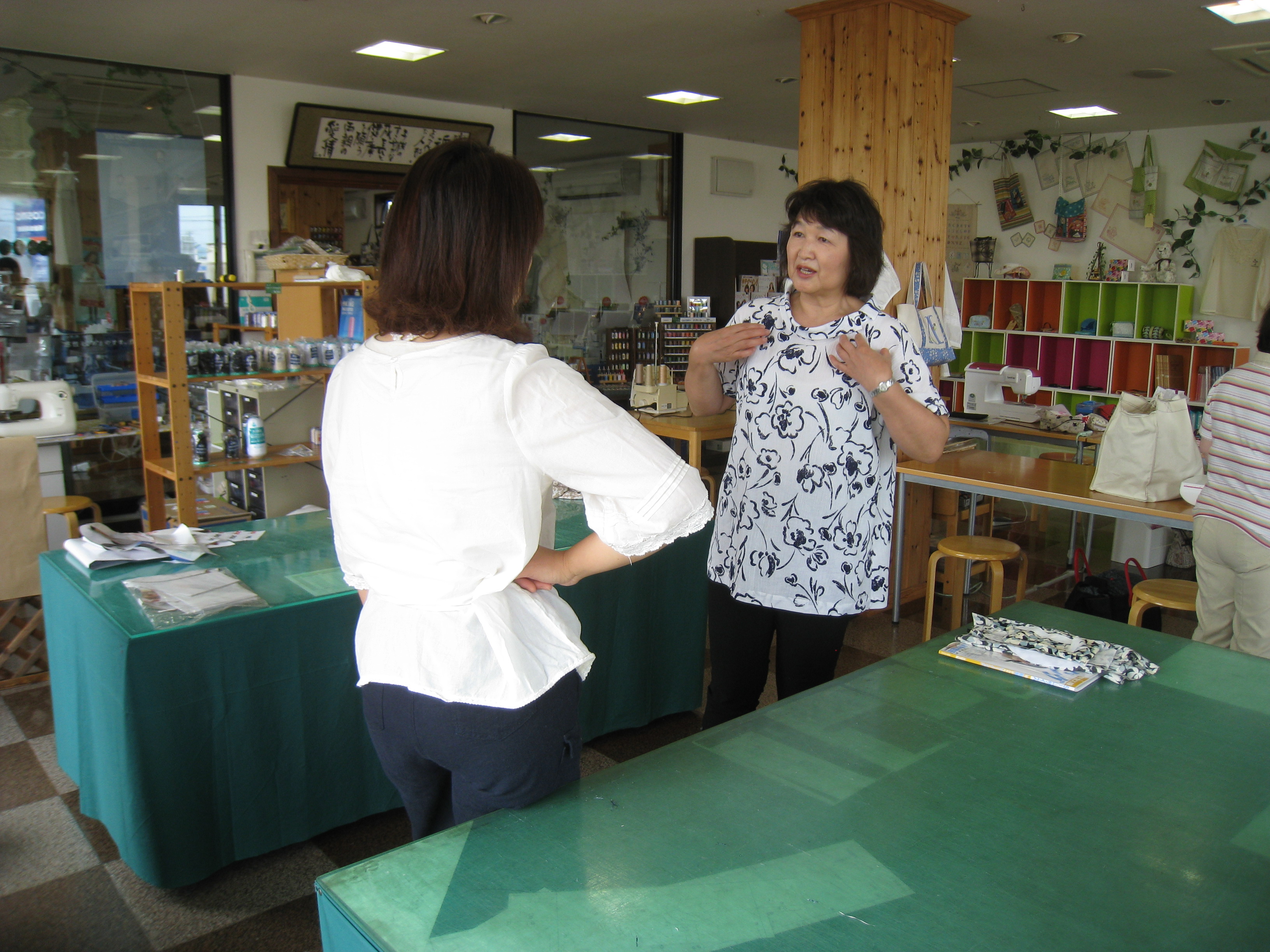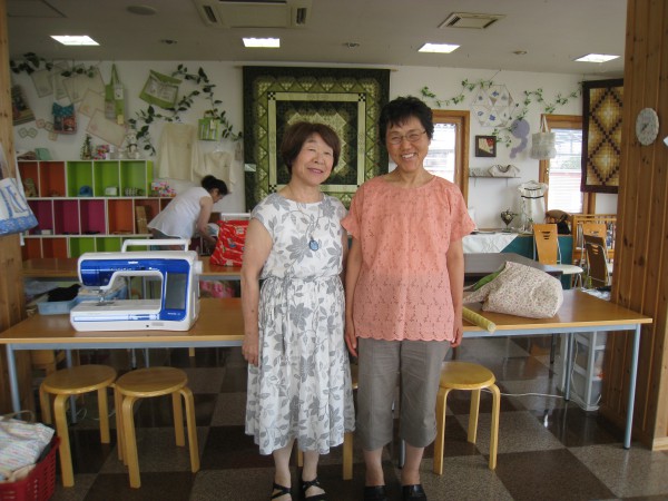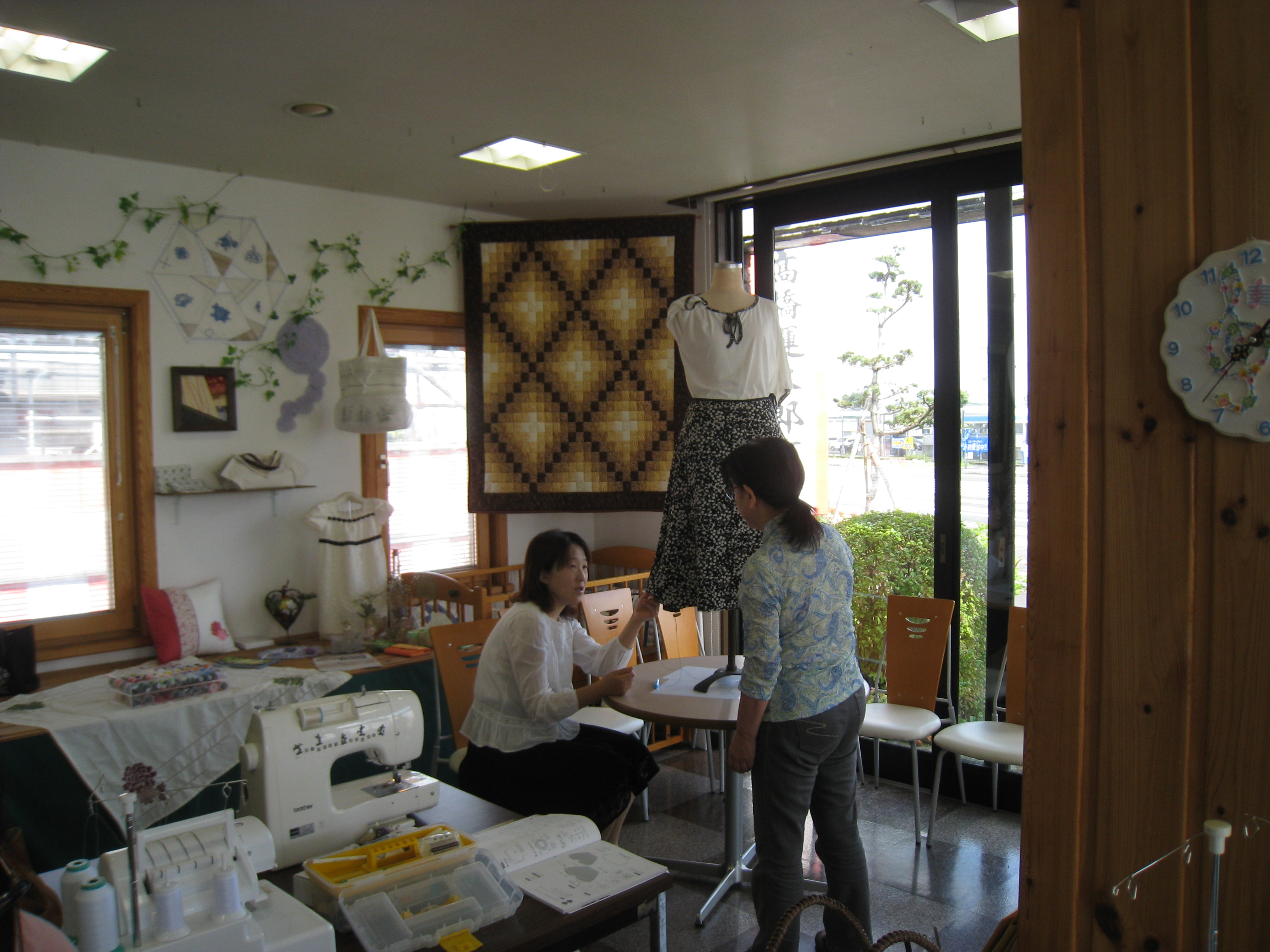 上西さんは自作のスカートを穿いて、久美子さんは自作のカーディガンを着て来店。