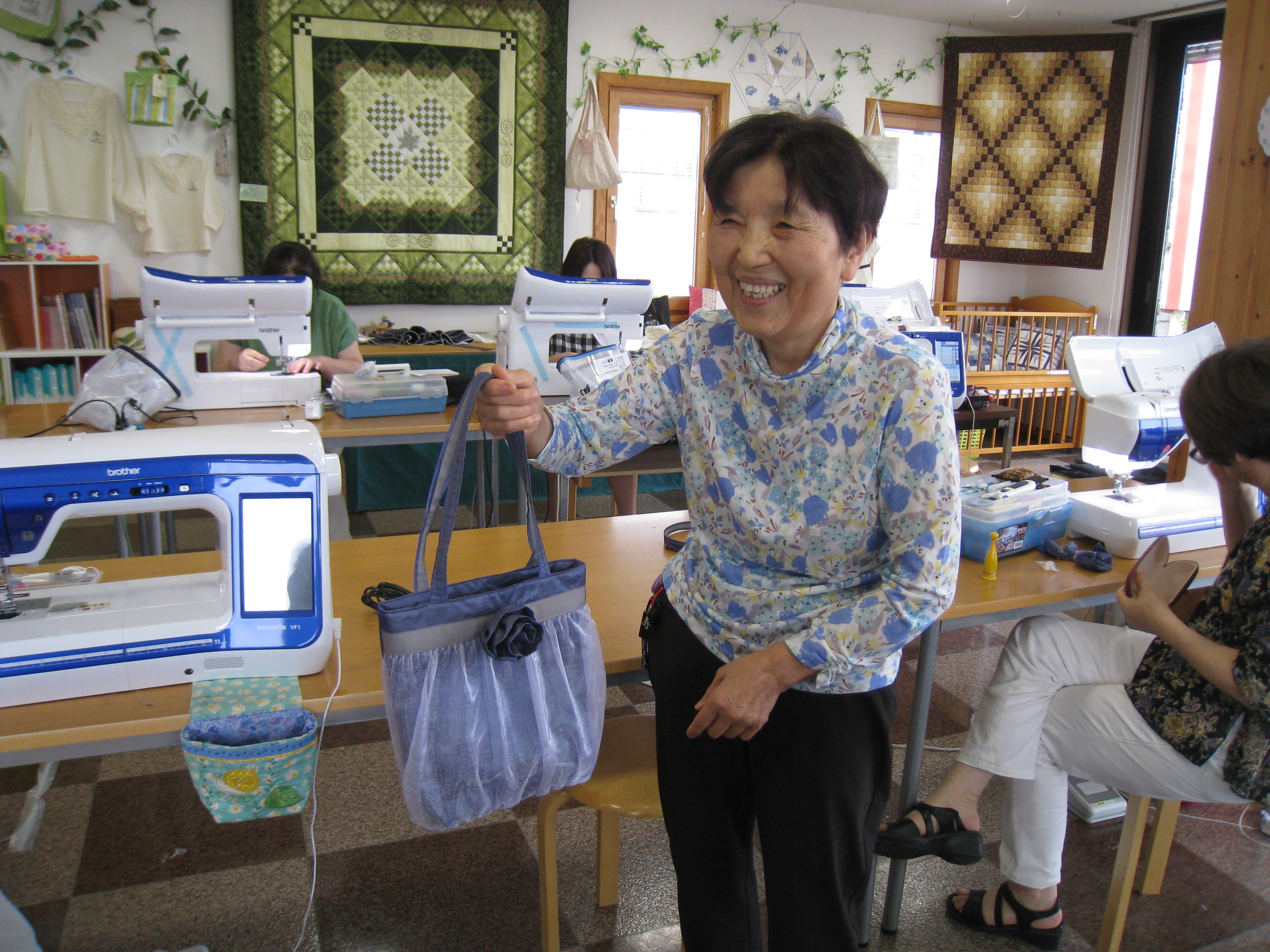 本日は東京のブラザー販売の吉森さんから来ていただき『フラワーオーガンジーバッグ』