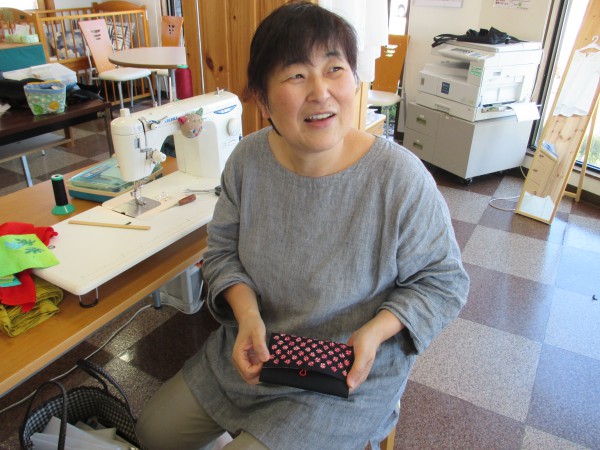 洋服づくりの方が多い中、赤松さんは先週のミニ講習会で作った『黒のポーチ』を4つ