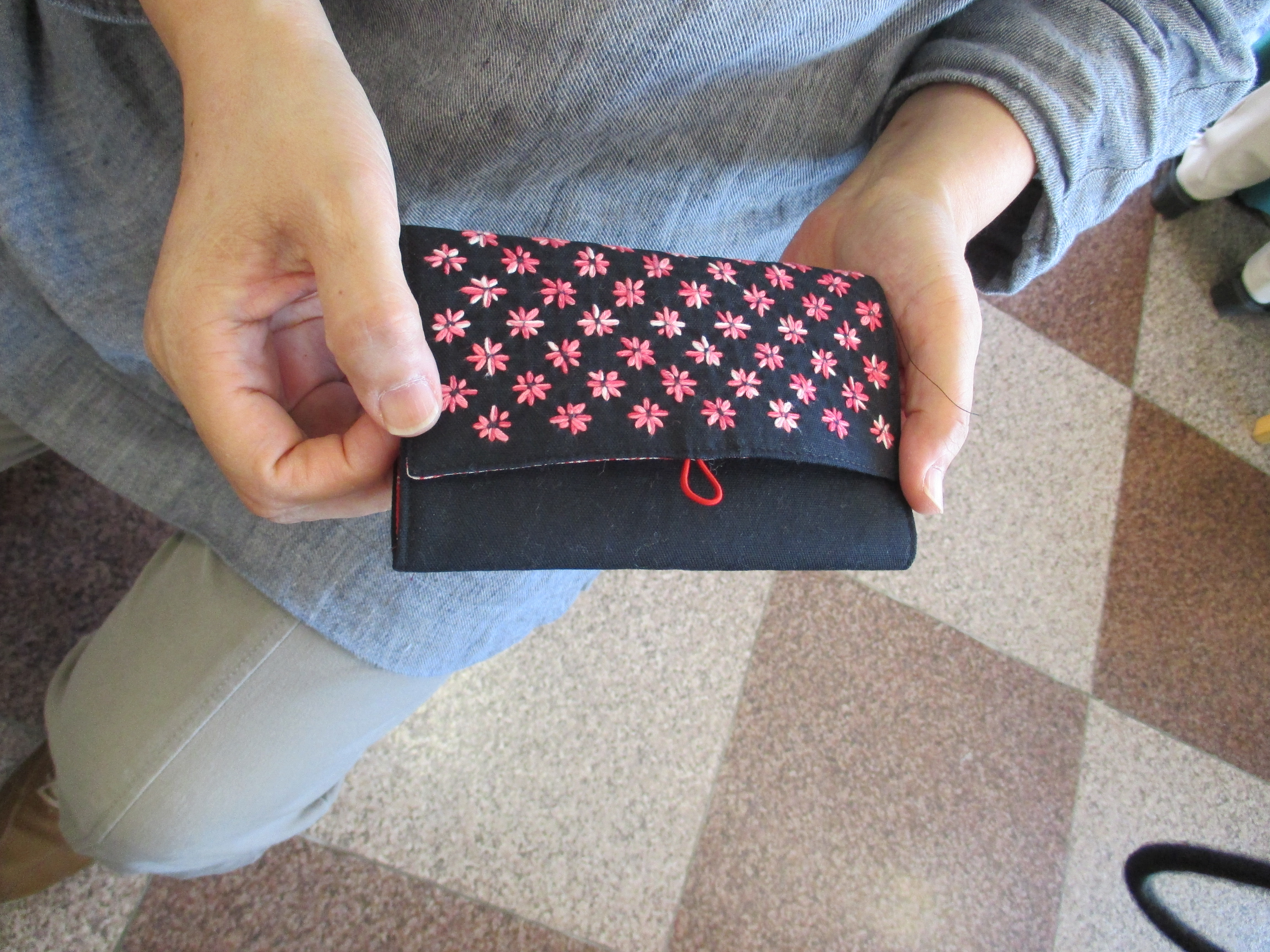 したと謙遜していますが、『黒地の本体』と『刺した部分のピンク』と『中の古布調の