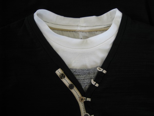 吉住さんが息子さんが買ってきた丸首のシャツを改造しました。首のところが開いて