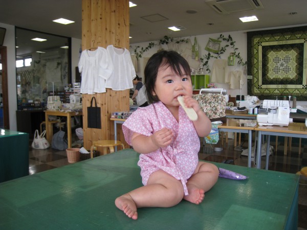 『じんべい』を着てパチリです。今年の夏はこれを着て自由自在に動き回ってね!?