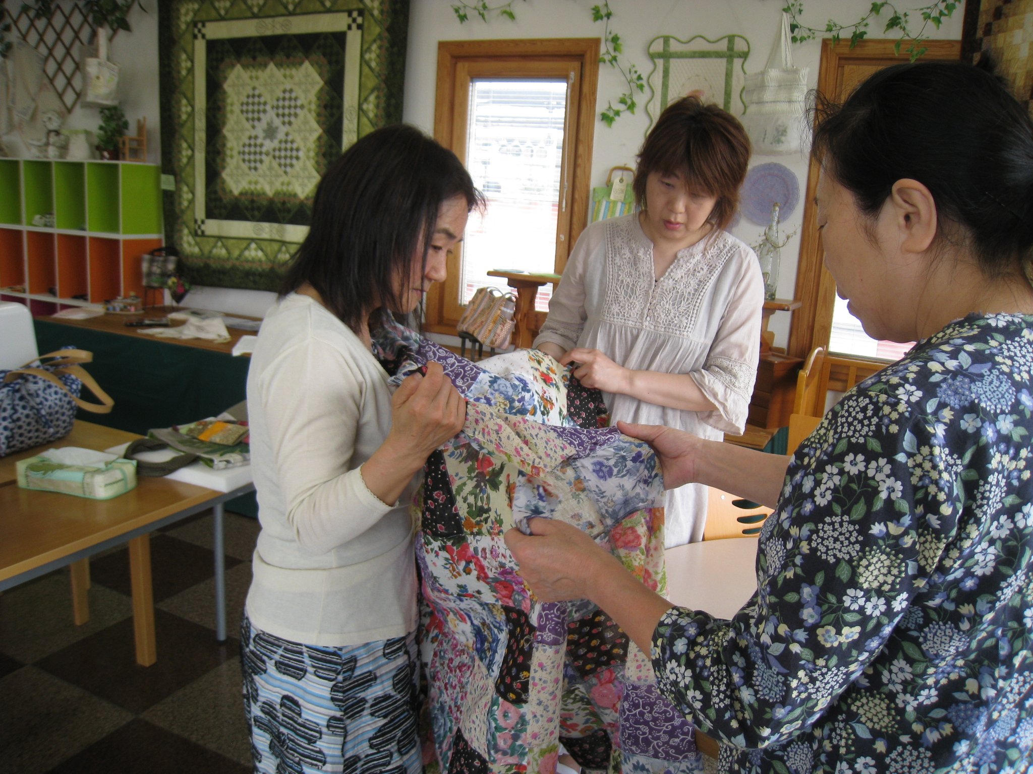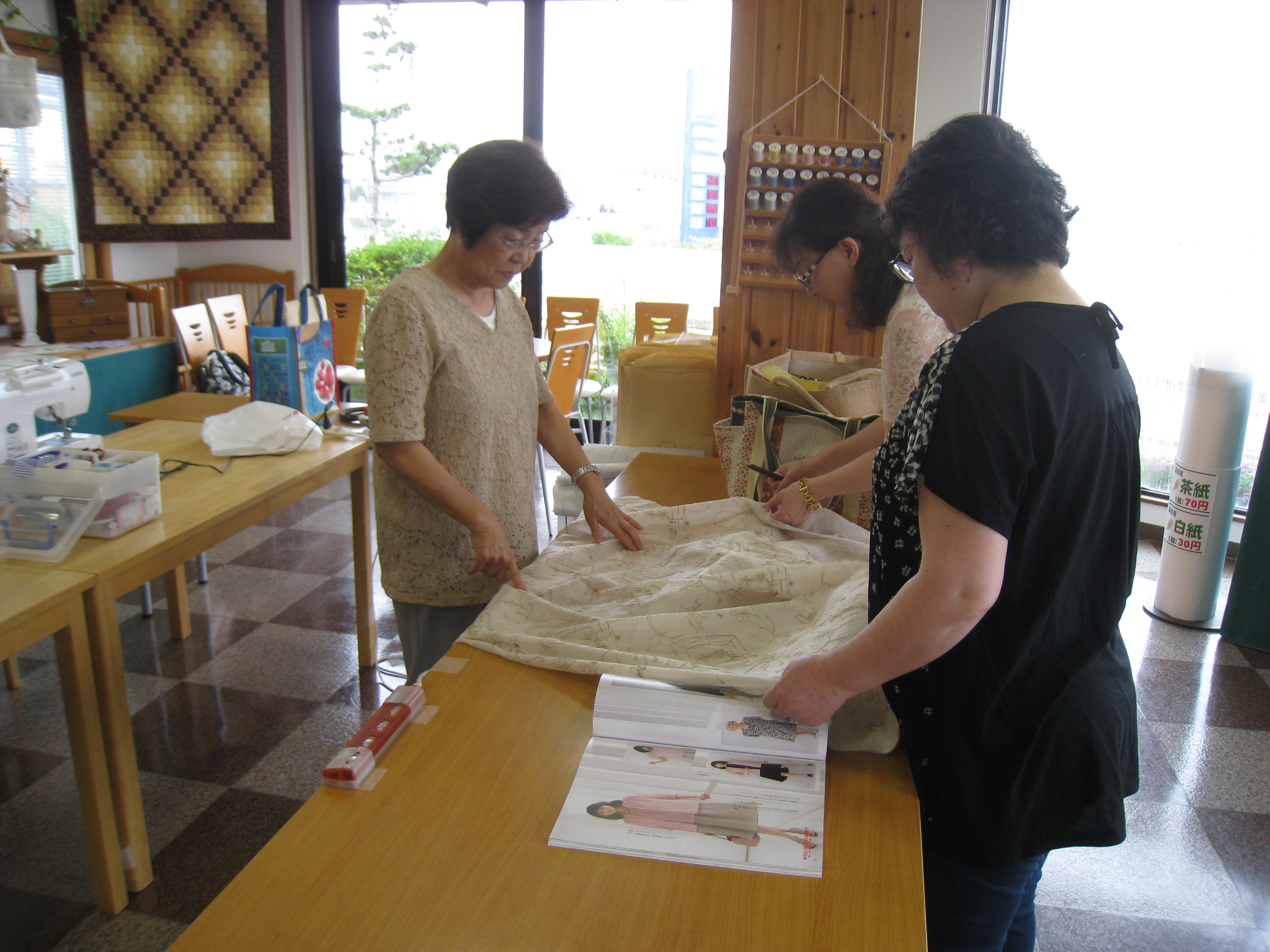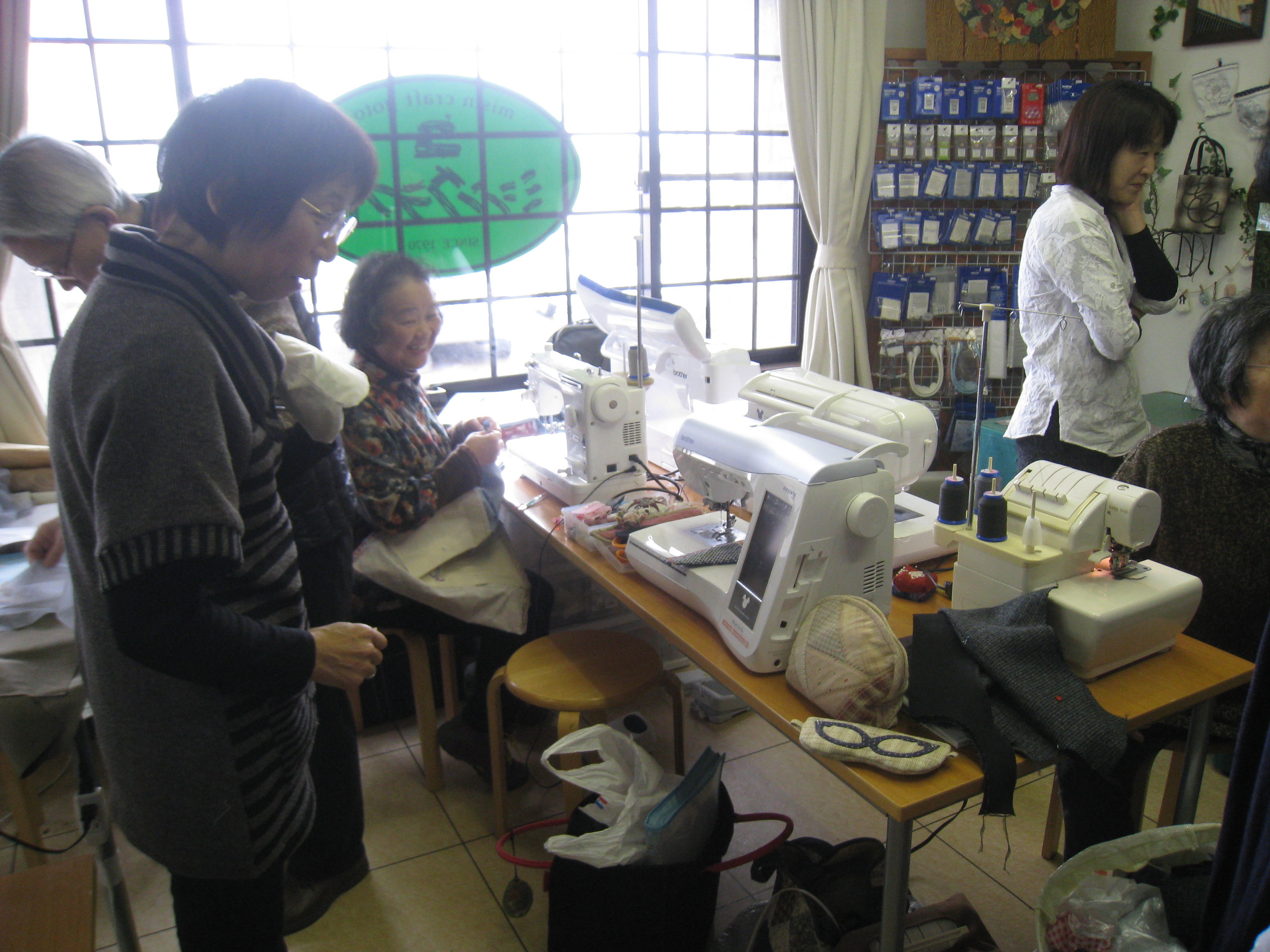 来て、ミシンを使って縫い物をしたり、型紙を取ったり、おしゃべりをしたり、結構