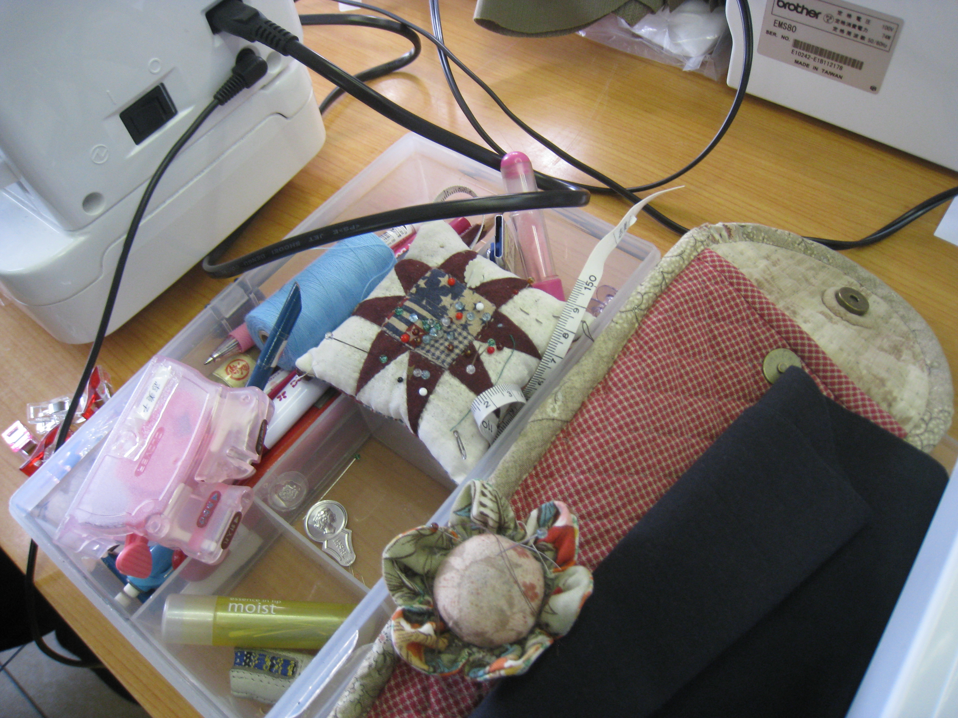 成澤さんが早坂さんの奥さんが作った『メガネケース』『ポーチ』『ピンクッション』を