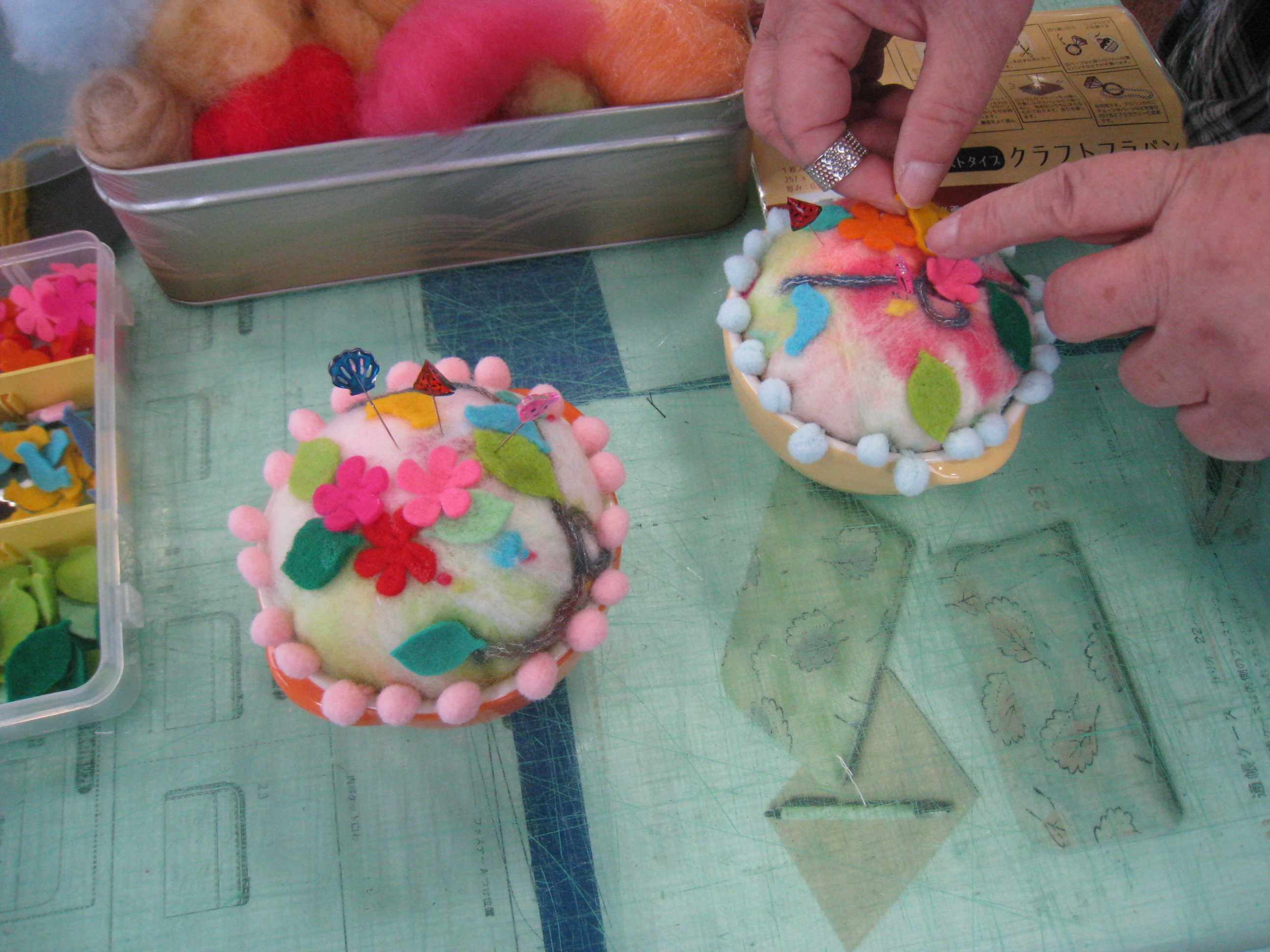 ニードルパンチで作るピンクッションの特別講習会開催しました!カラフルなものがいっぱい出来ました。