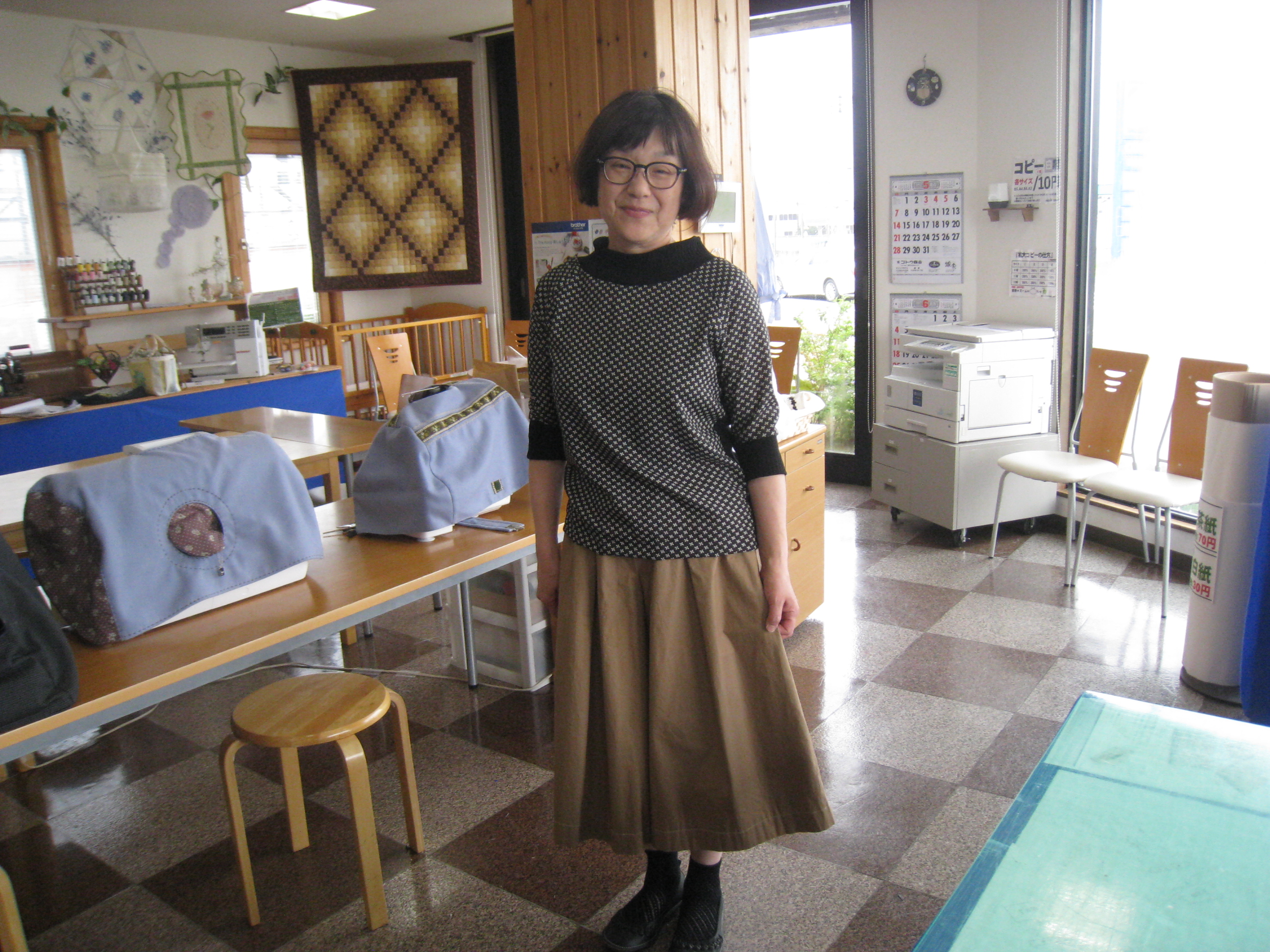 午後の部では『智江さん』が上下自分で作った服で来店。ロックミシンを買っていた