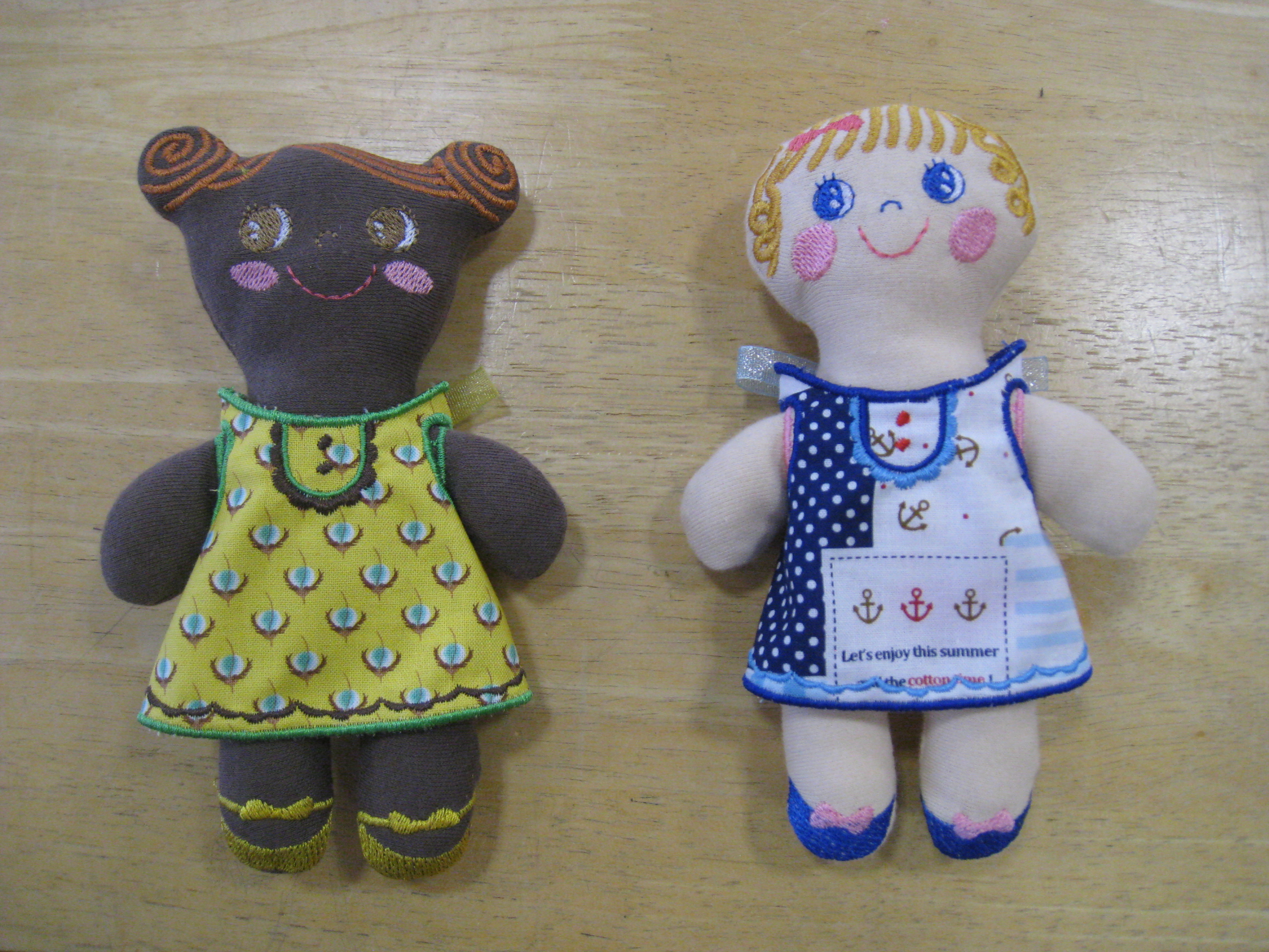 ピース』を完成させました。それぞれ2歳の女の子用です。二人とも同じ型紙から布違い