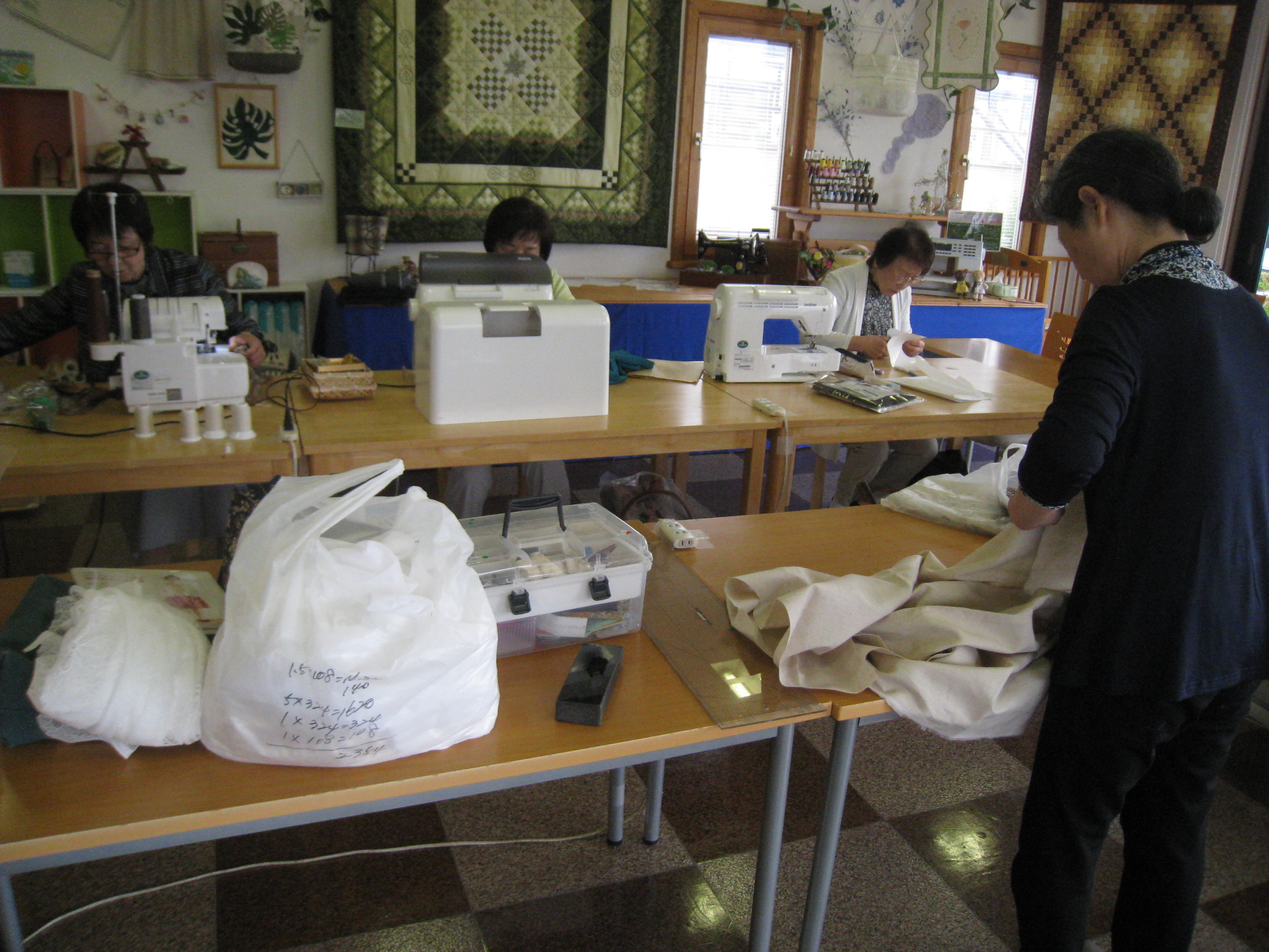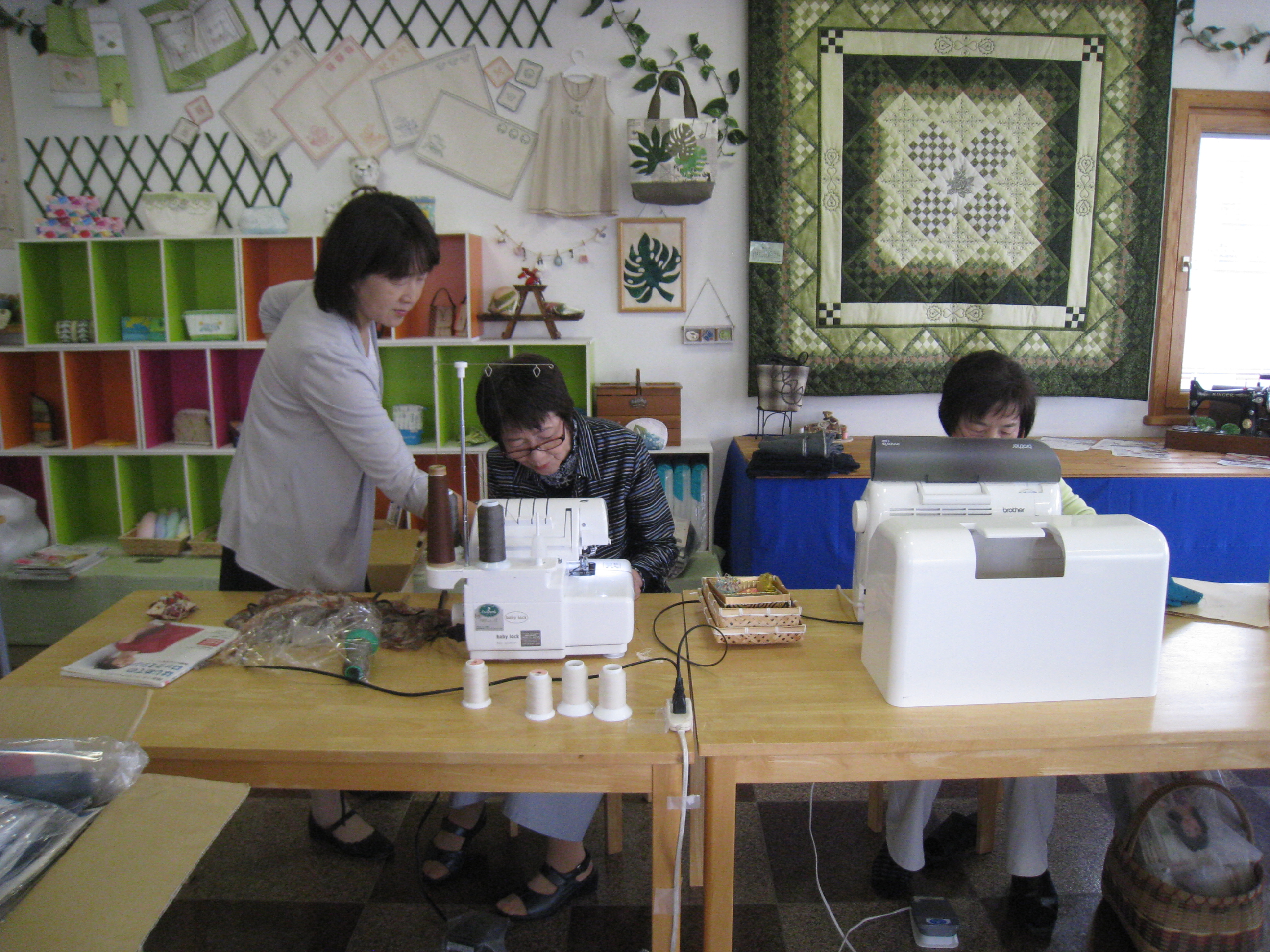お店のミシンさん部門はとっくに広い場所に移動。講習会もいままで四人で使っていた